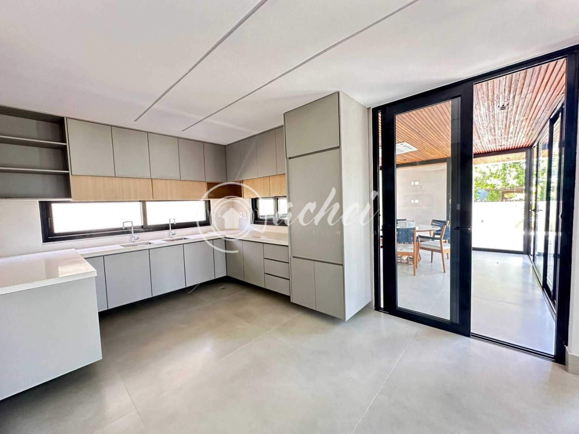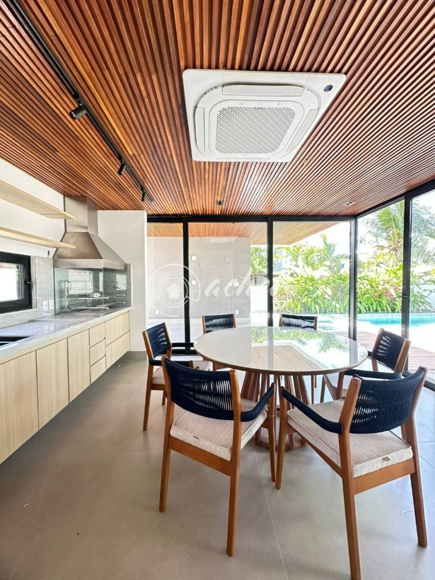 A cozinha, moderna e espaçosa, é totalmente integrada à área gourmet, que conta com churrasqueira e acesso direto à piscina privativa — um convite ao lazer e à convivência. A casa possui ainda dois banheiros sociais (interno e externo), dependência completa, área de serviço e um poço artesiano, garantindo autonomia e praticidade.