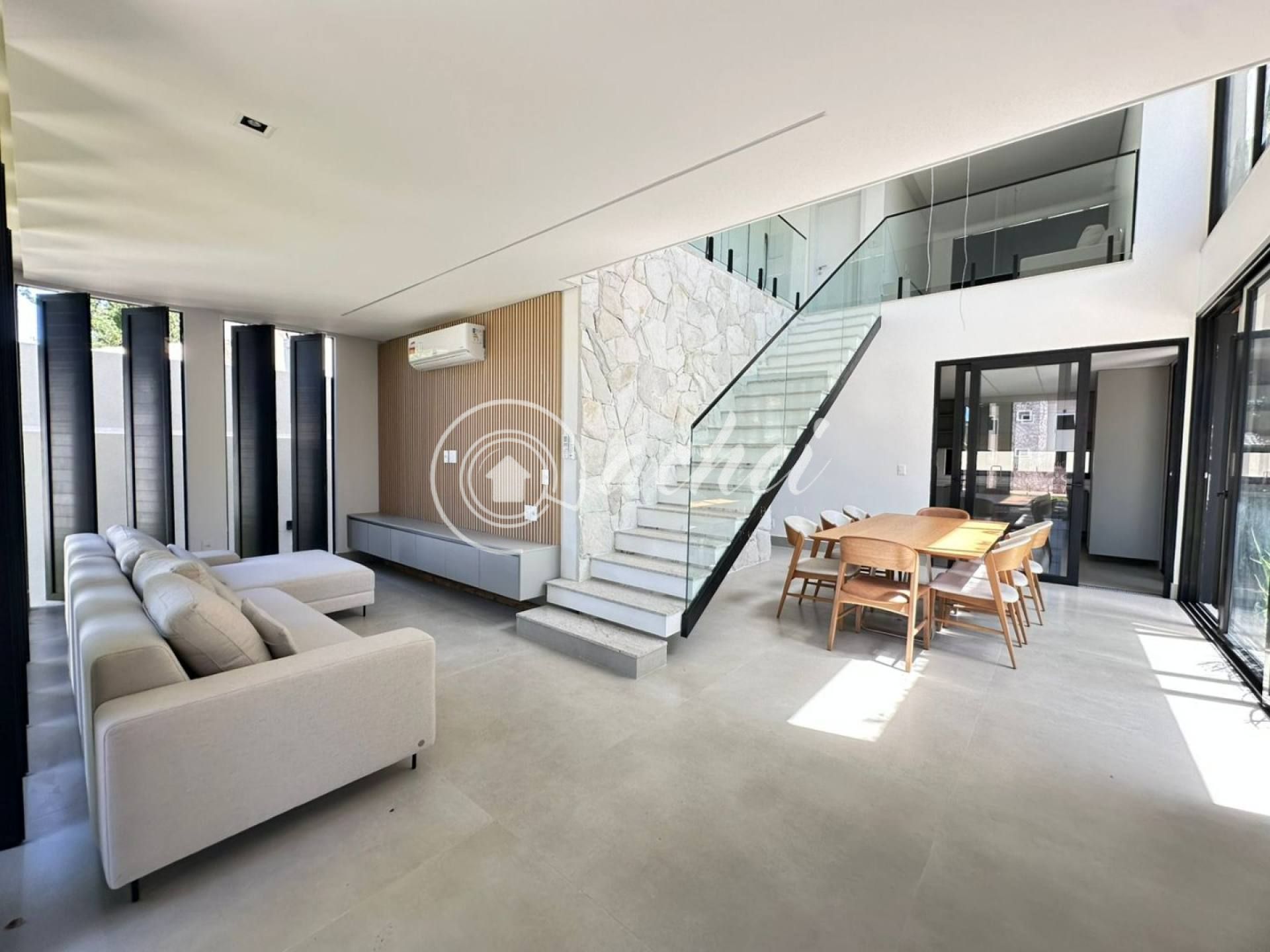 O imóvel dispõe de 5 suítes, sendo uma no pavimento térreo, todas com armários planejados e excelente iluminação natural. As áreas sociais são amplas e bem distribuídas, com sala de estar, sala de jantar e duas salas de TV, criando o ambiente perfeito para receber família e amigos.