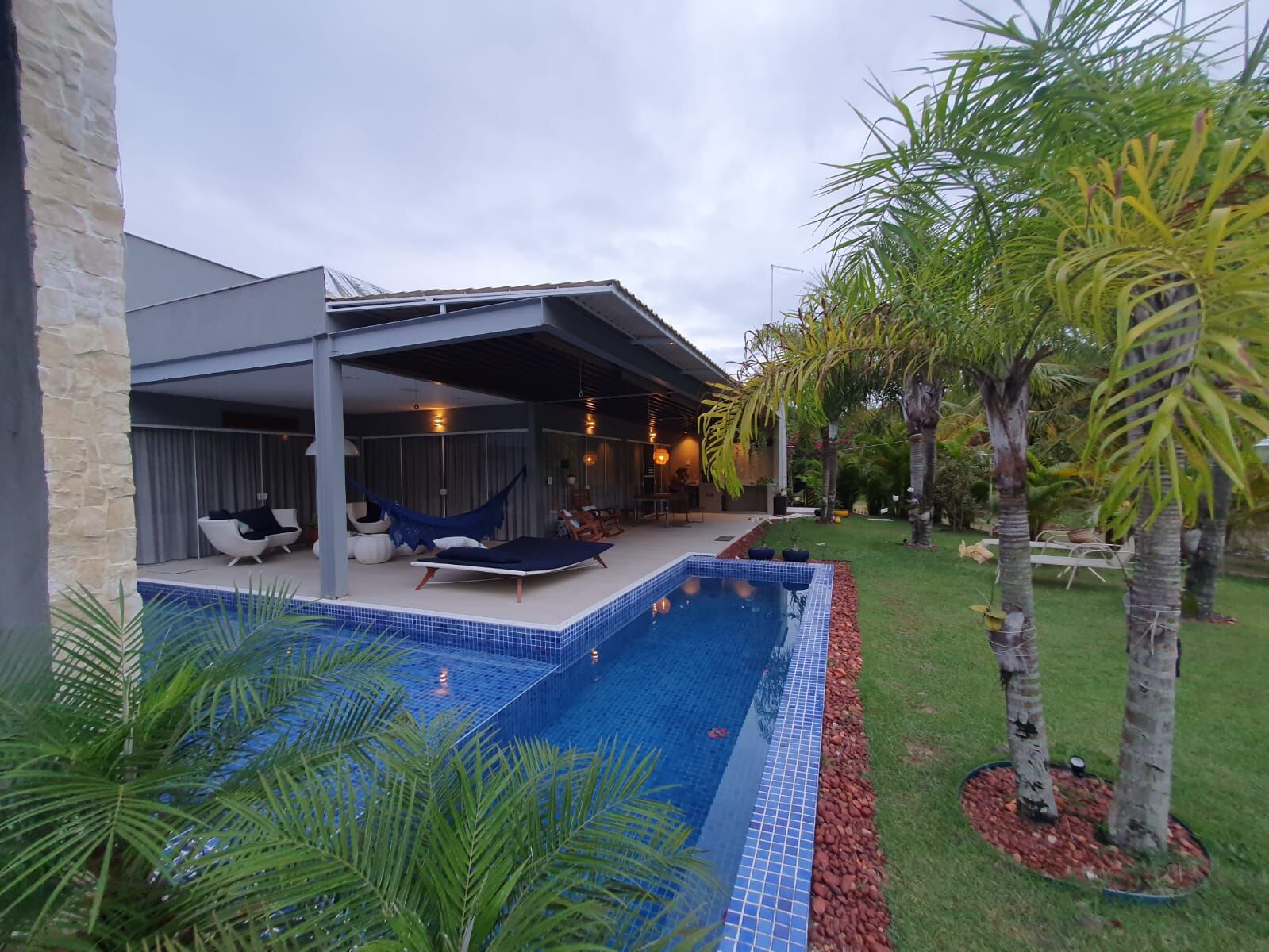 Venha desfrutar de todo o requinte e conforto que esta casa de alto padrão para locação oferece. Com 5 dormitórios, todos eles suítes, e 5 banheiros, 5 ar condicionados, varandas cobertas, sala de estar e Jantar, sala de cinema, telão, polegadas e sistema som e projetor (incluso na proposta mobiliado), escritório, lavabo, cozinha, despensa, dependência de empregada, área gourmet, banheiro. Este imóvel é perfeito para você e sua família desfrutarem de momentos inesquecíveis de privacidade e tranquilidade.