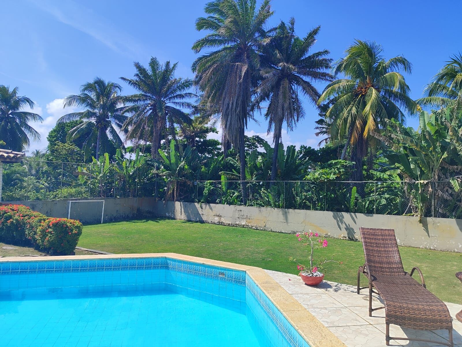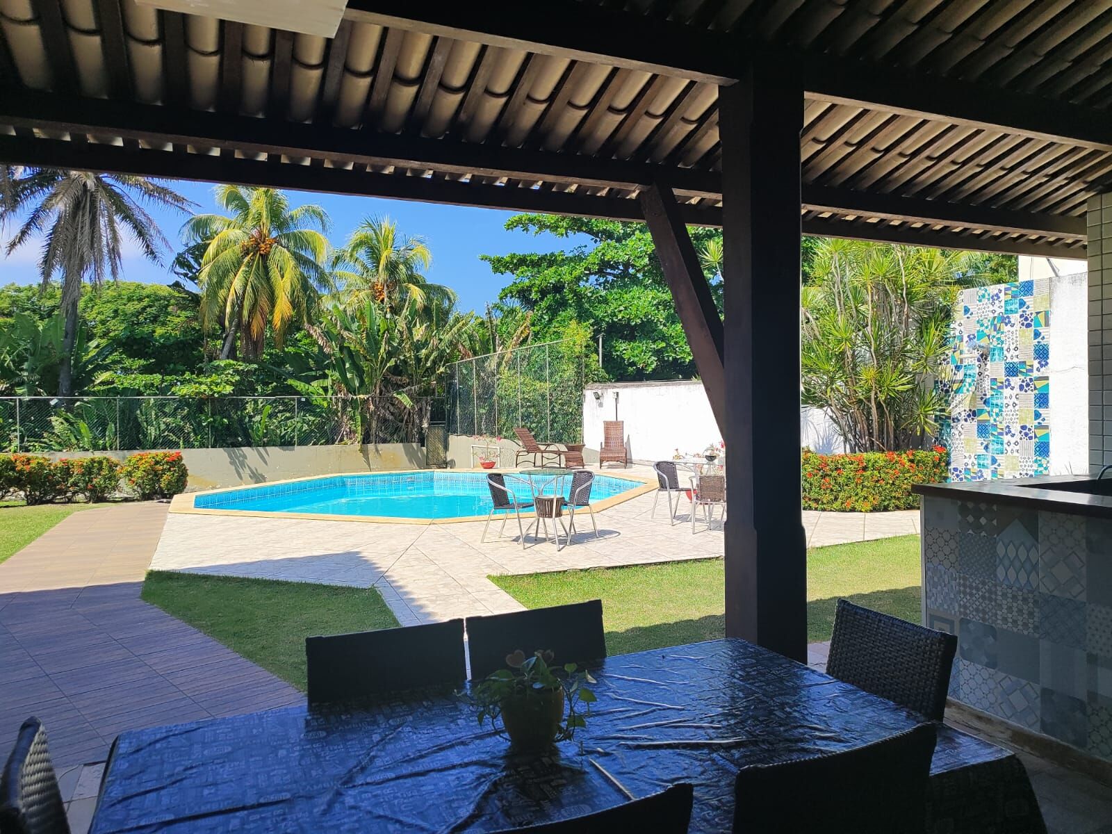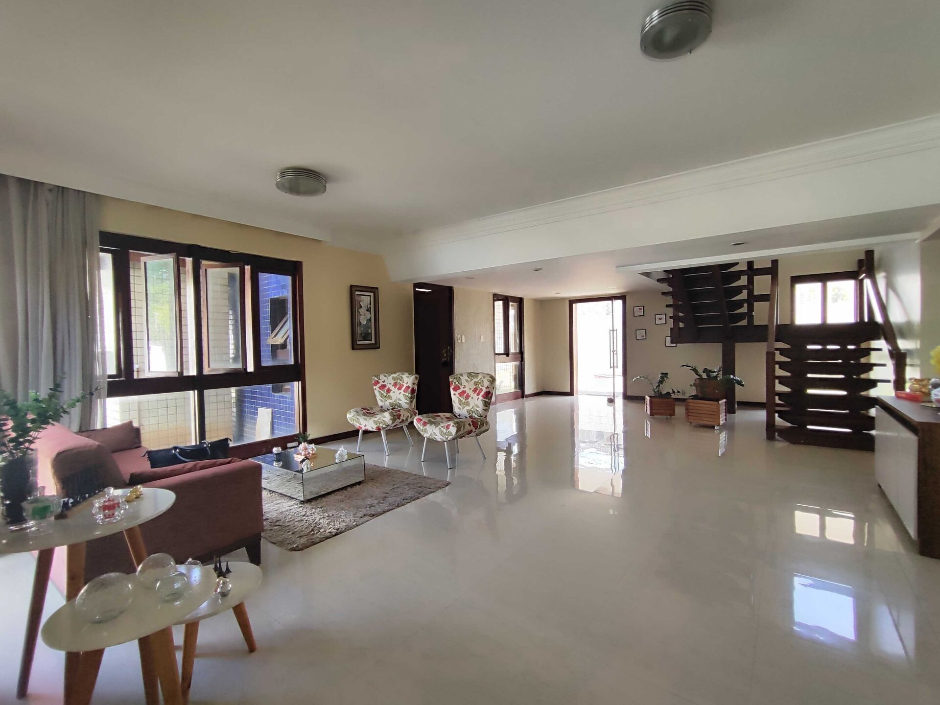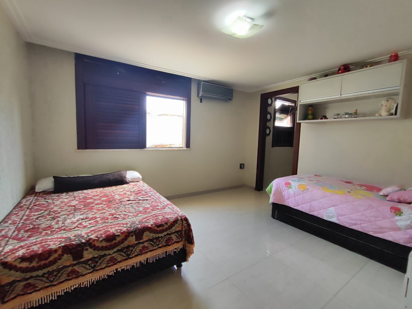 Casa em Villas do Atlântico, em Alameda, a 5 minutos da praia, composta por 05 quartos, sendo três suítes, uma no térreo e mais 03 banheiros. São três salas com 04 ambientes. Cozinha, área de serviço, dispensa, espaço para academia, varandas, quiosque, piscina, campo de futebol e garagem para mais de 3 carros.