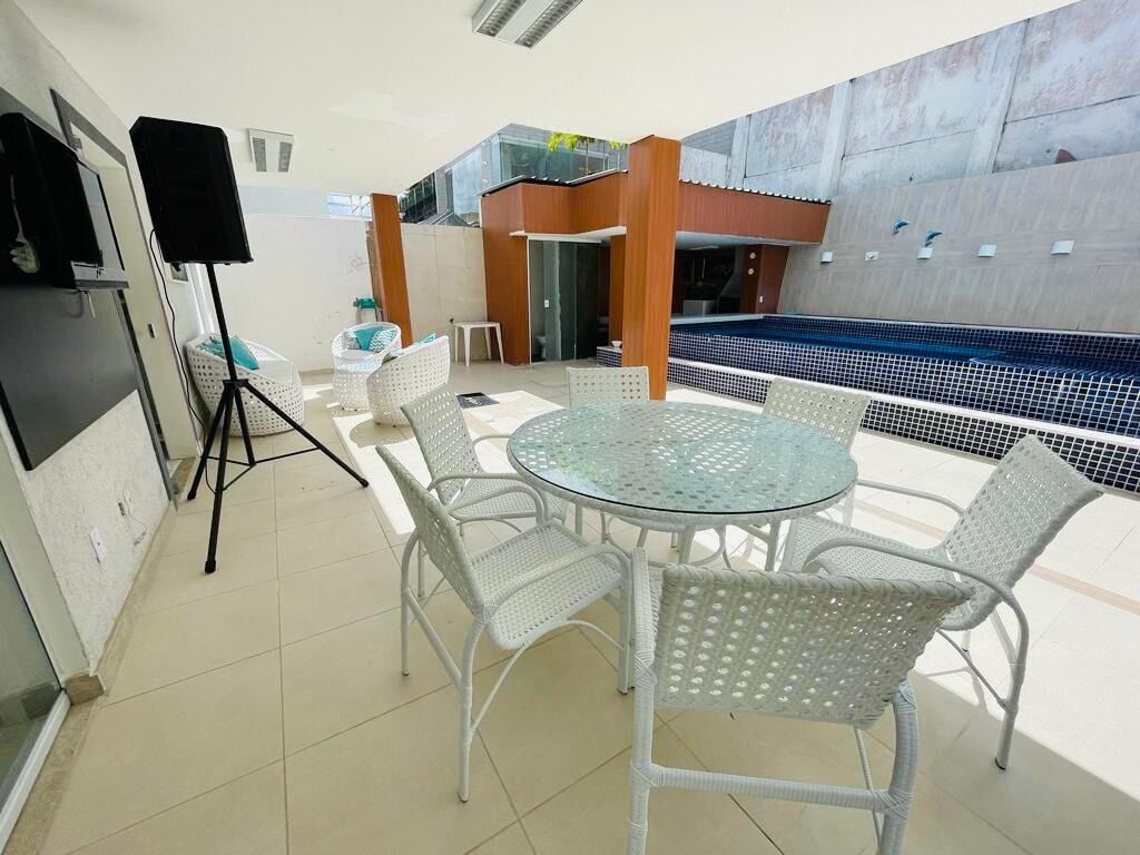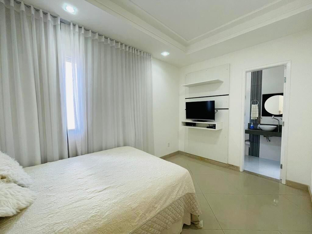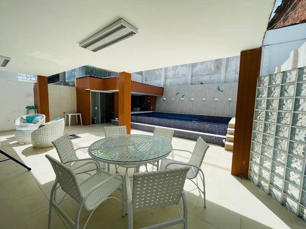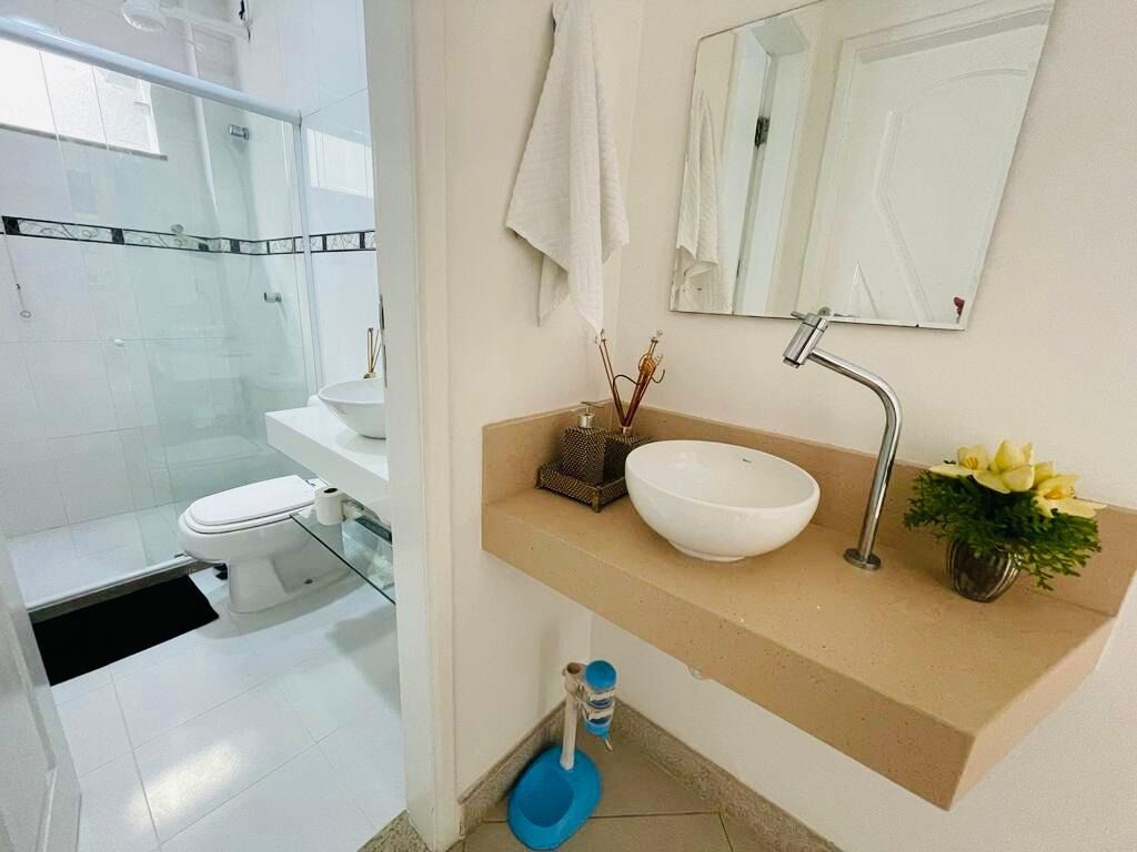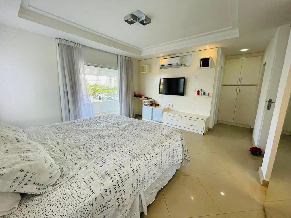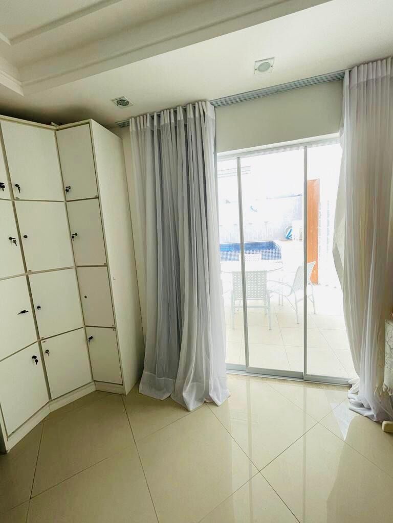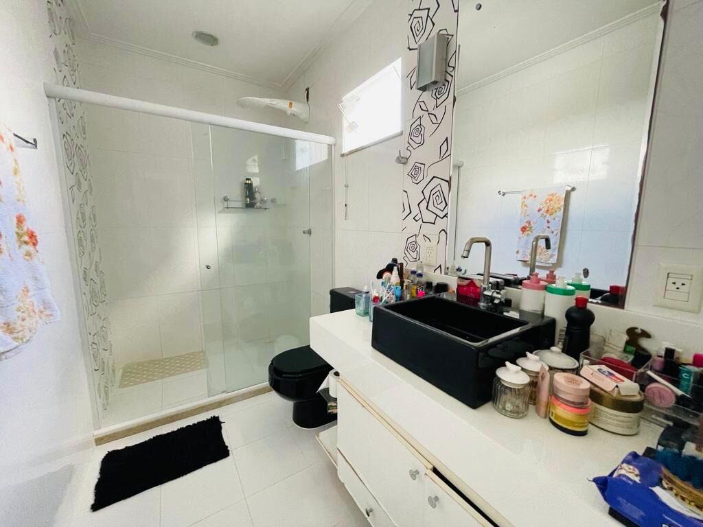4 quartos, sendo 3 suítes, sala de estar e jantar, cozinha com armários planejados, lavabo, área de serviço, banheiro social, piscina privativa com churrasqueira, e vaga de garagem.