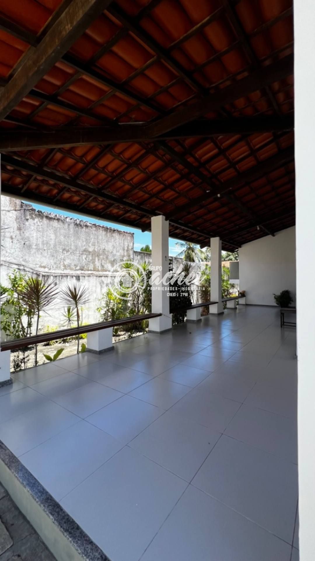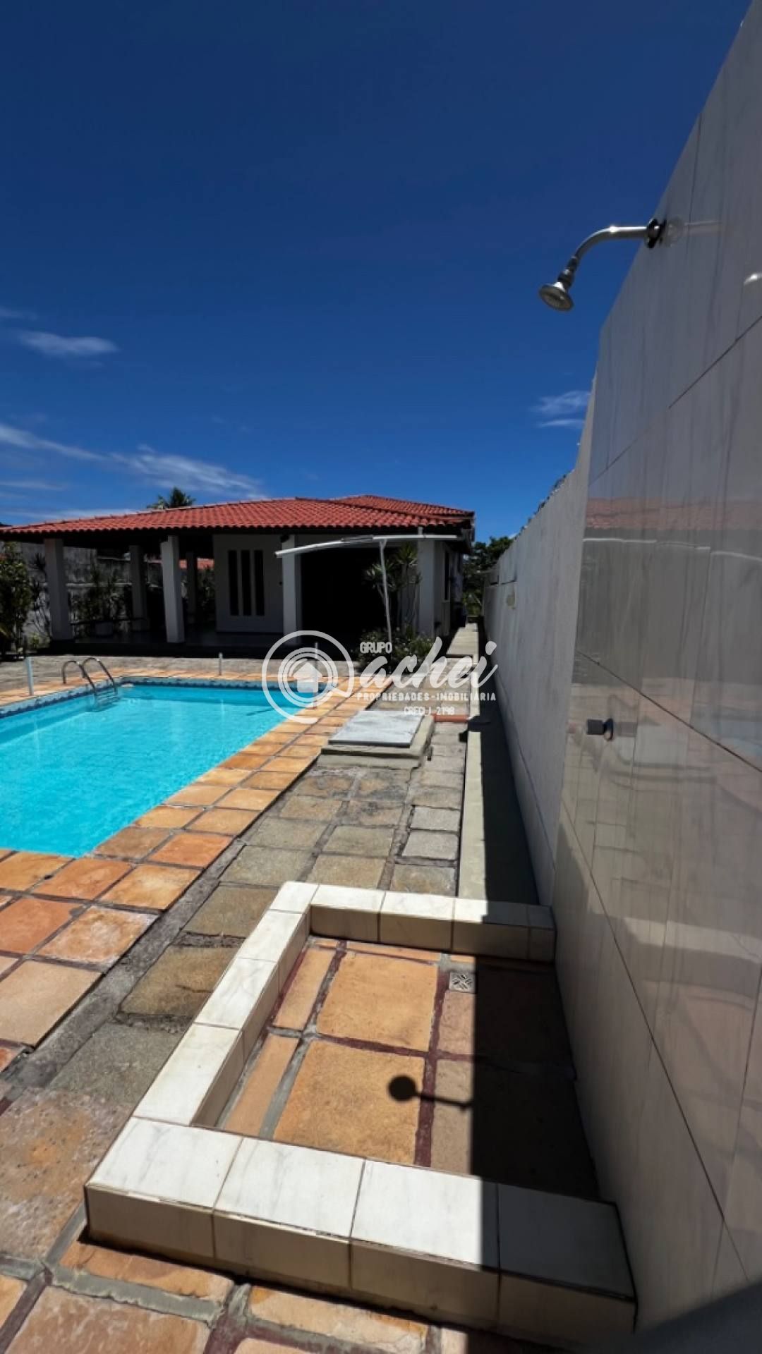 Com 307m² de área construída em terreno de 600m², a residência possui dois pavimentos. O térreo conta com duas salas, suíte, cozinha, lavabo, varanda, dependência de serviço com suíte, quarto de depósito, salão de jogos/academia, quintal com árvores frutíferas, canil e espaço para lavagem de pescados. O pavimento superior tem três quartos, sendo uma suíte, todos com varanda, além de sala íntima e banheiro social.