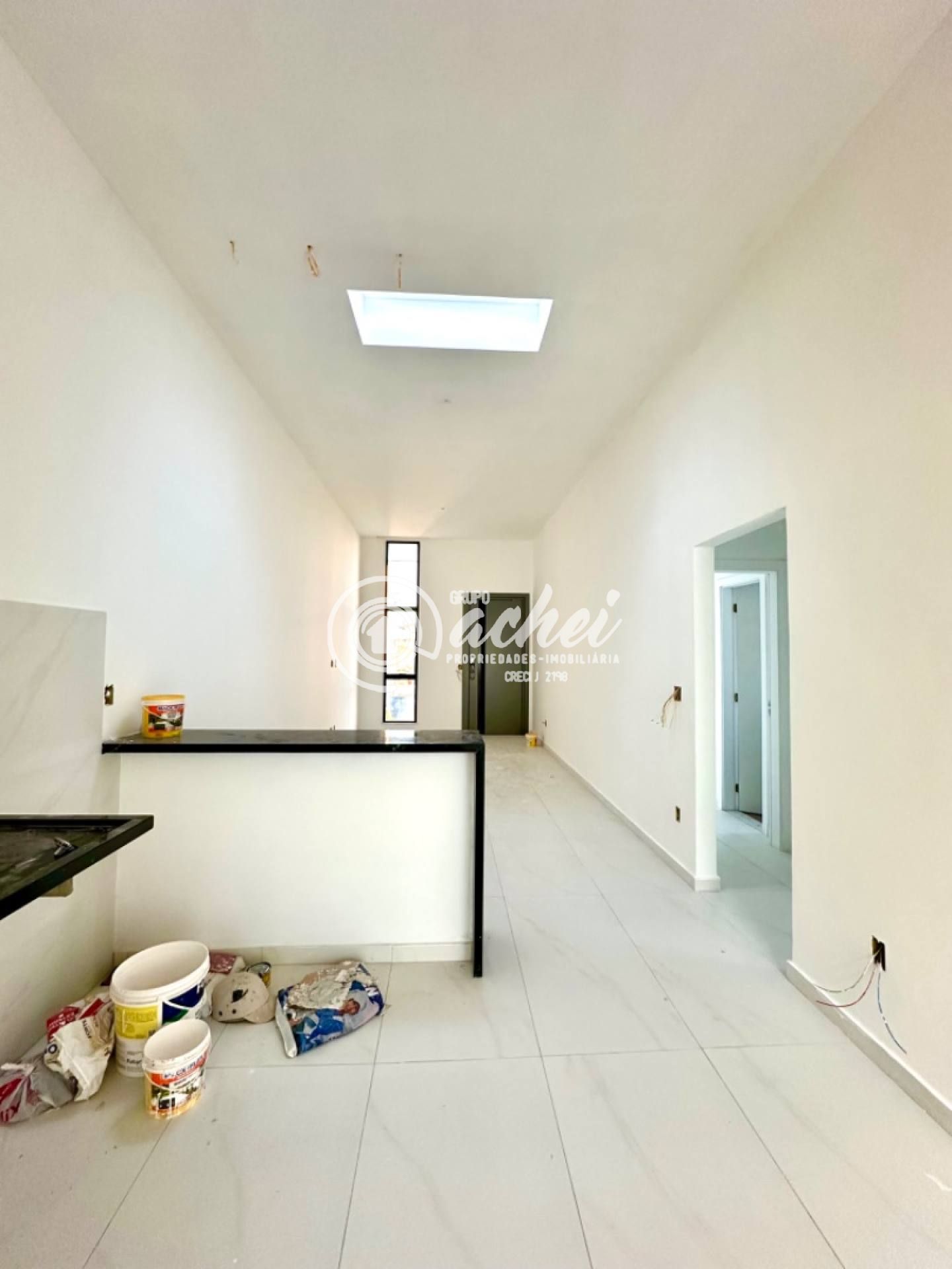 O imóvel possui 03 quartos, sendo 01 suíte, 02 banheiros, sala com pé direito de 5m, cozinha em conceito aberto integrada com a sala, área de serviço e 02 vagas de garagem.