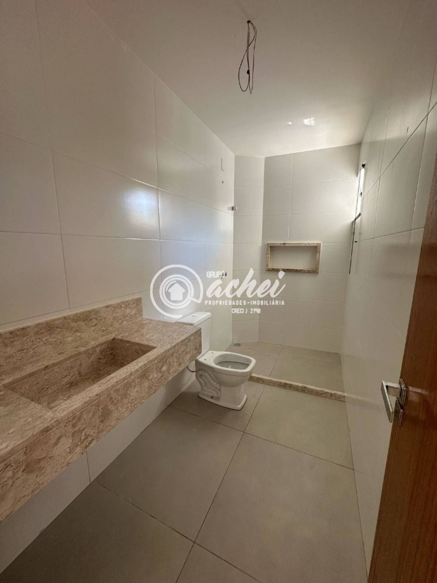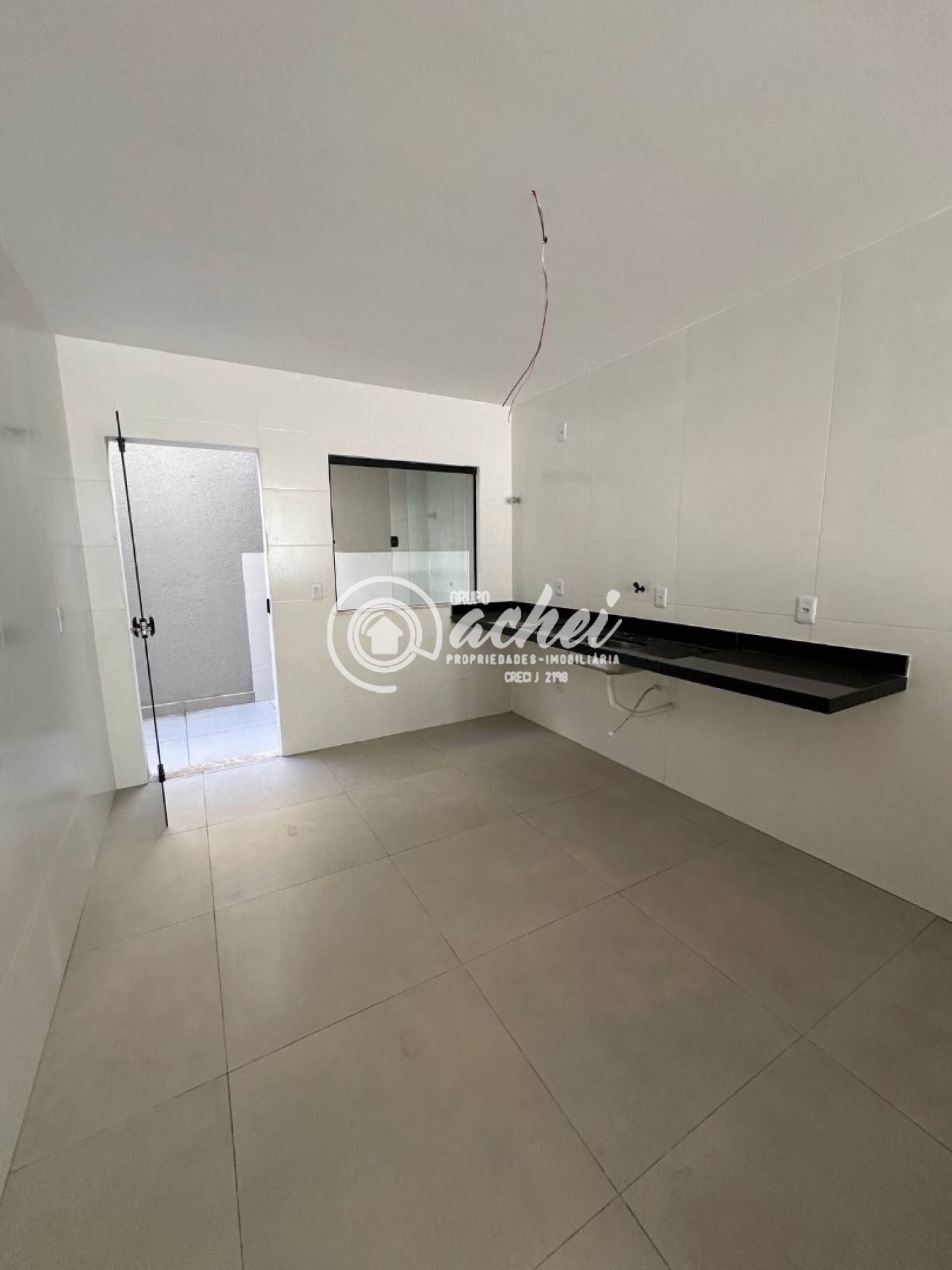 A casa é entregue com piso porcelanato de alta qualidade e bancadas em mármore bege Bahia, destacando o acabamento sofisticado. São 180m² de área construída, com 02 vagas de garagem.