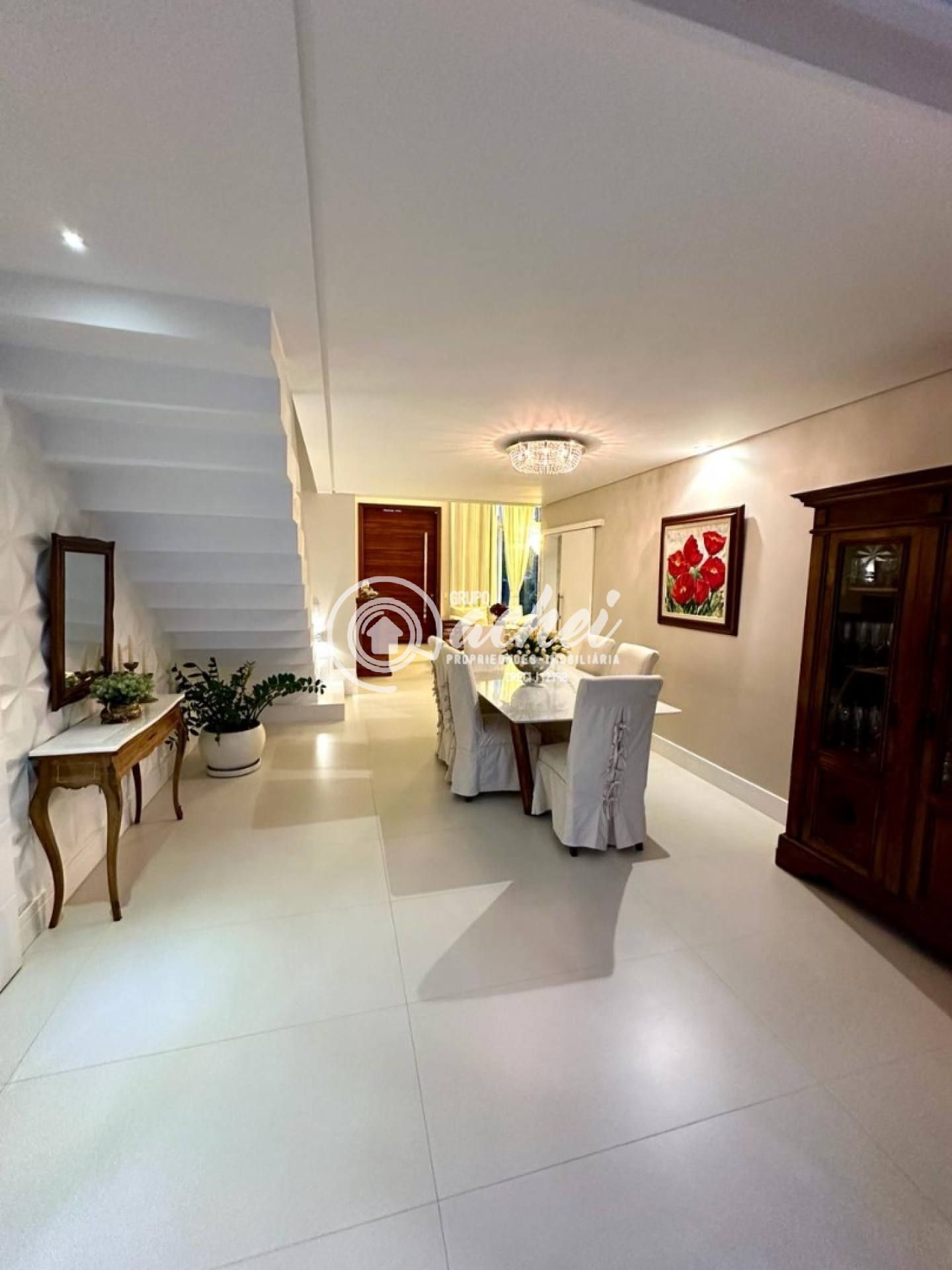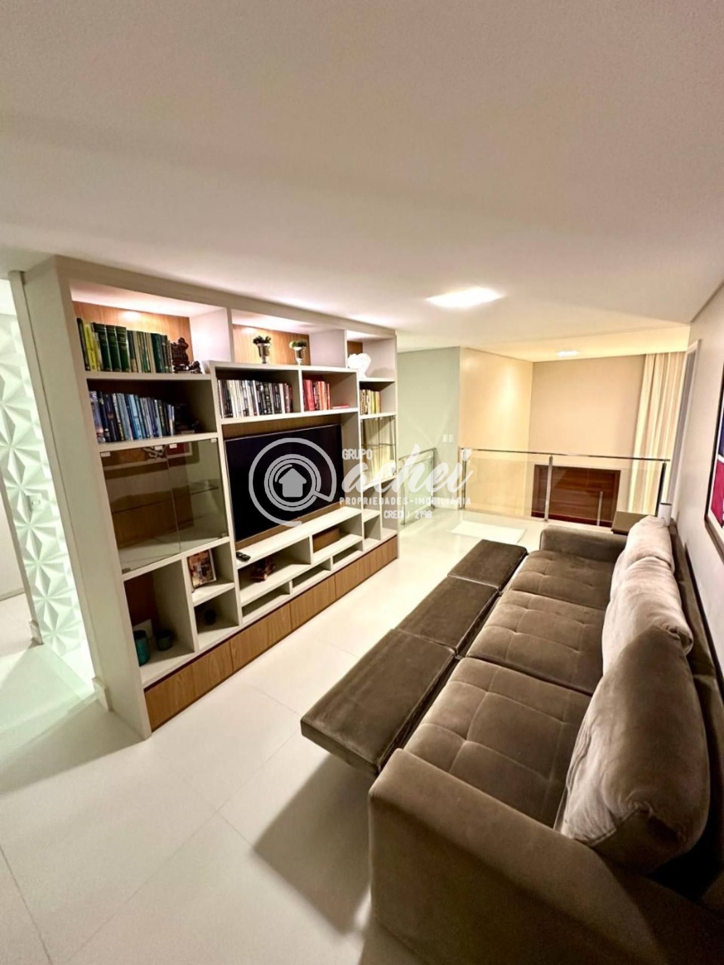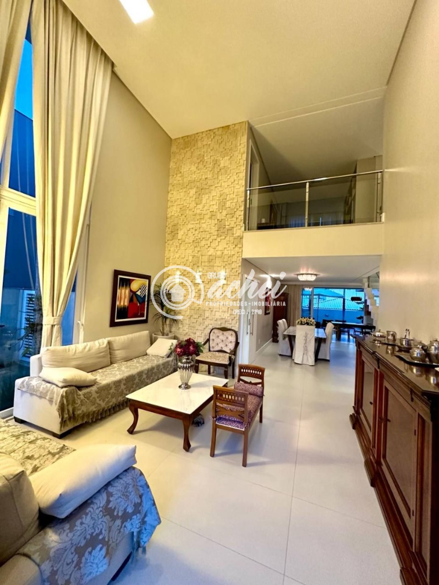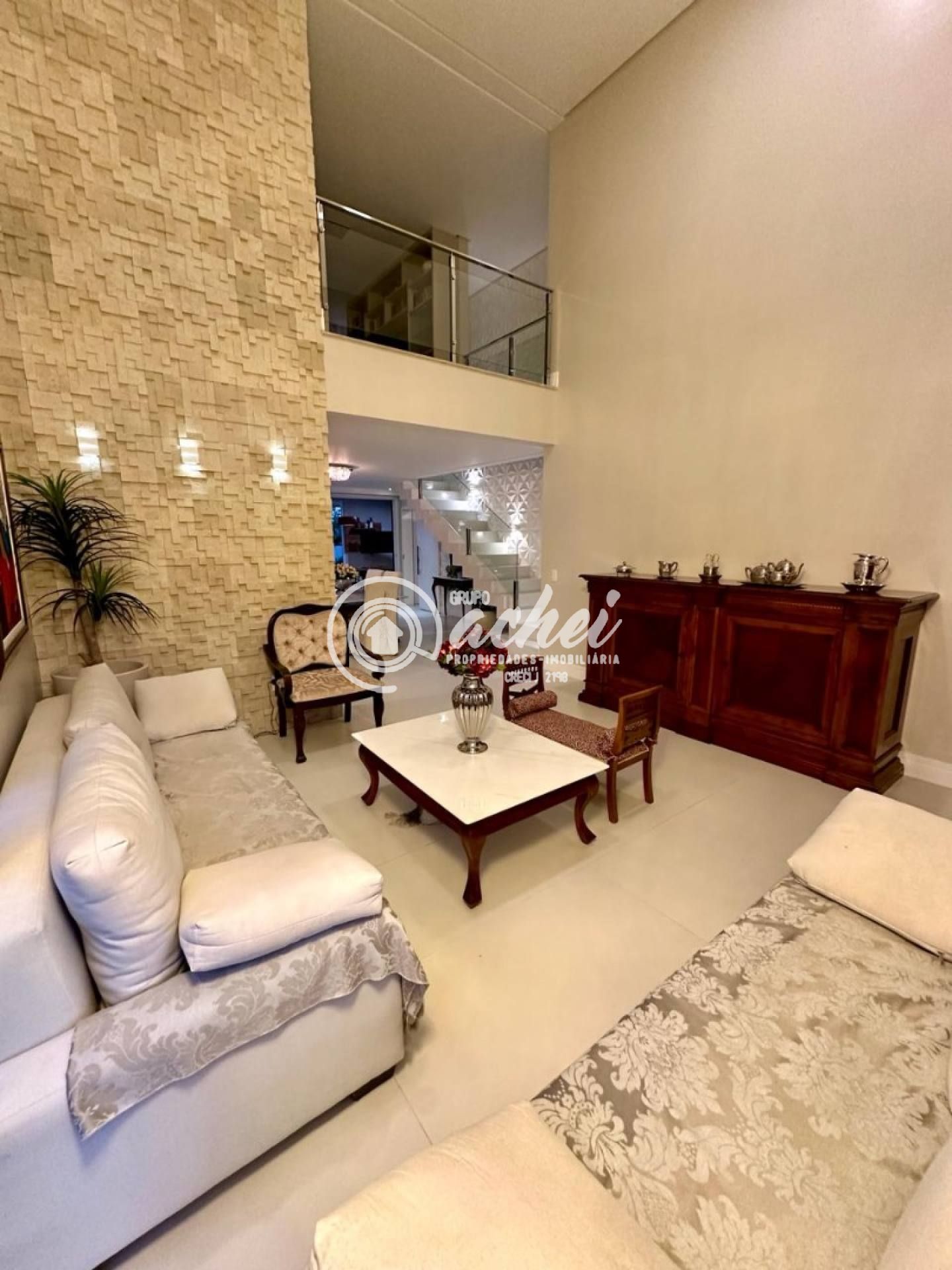 Casa com 04 suítes, sendo 03 no pavimento superior (todas com varanda, incluindo suíte máster com closet) e 01 no térreo. Pavimento térreo com sala de estar com pé direito duplo, sala de jantar integrada à varanda gourmet, cozinha com despensa. Área de serviço, dependência completa, 2 depósitos, estar íntimo com varanda no pavimento superior.