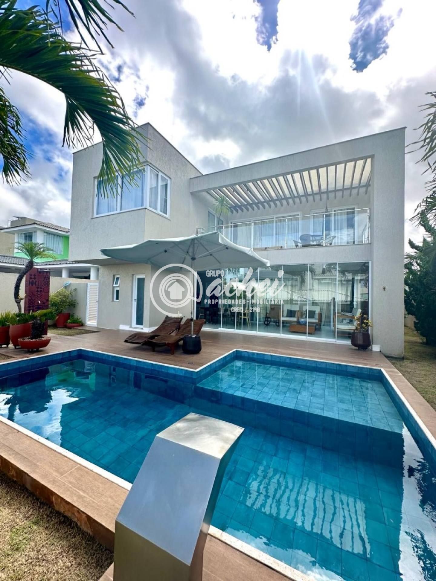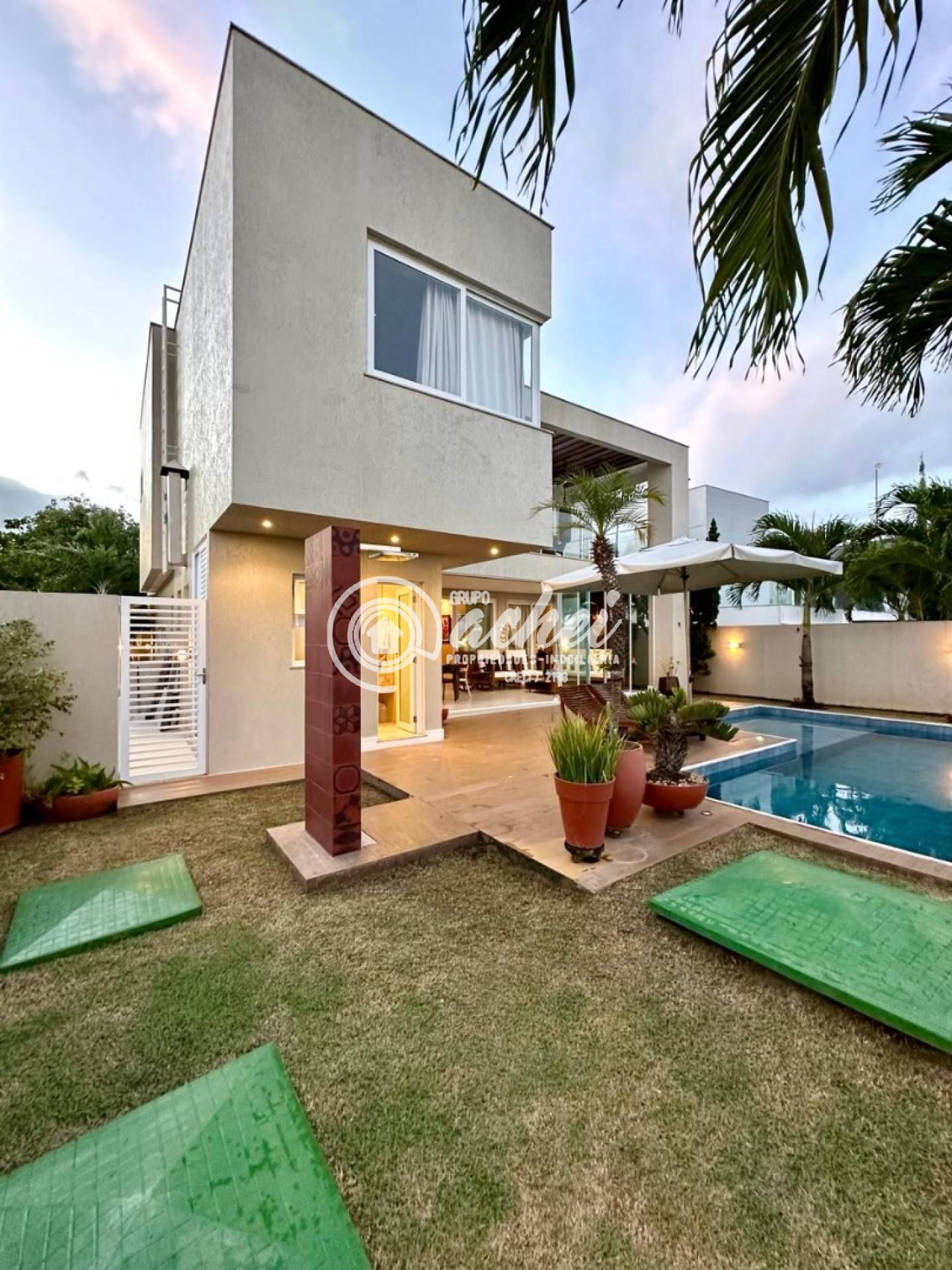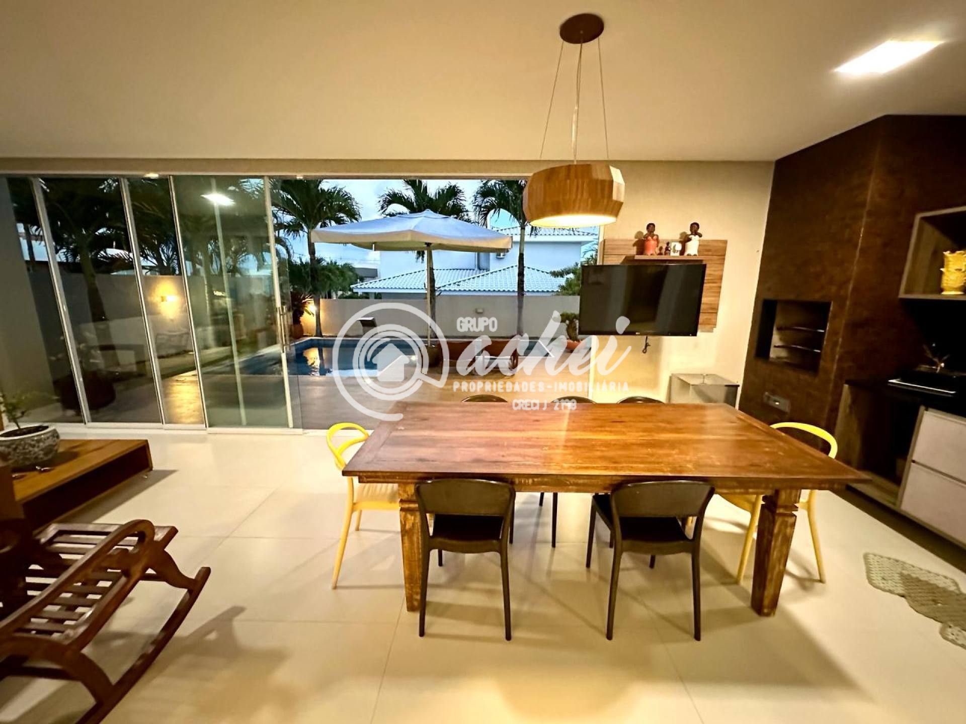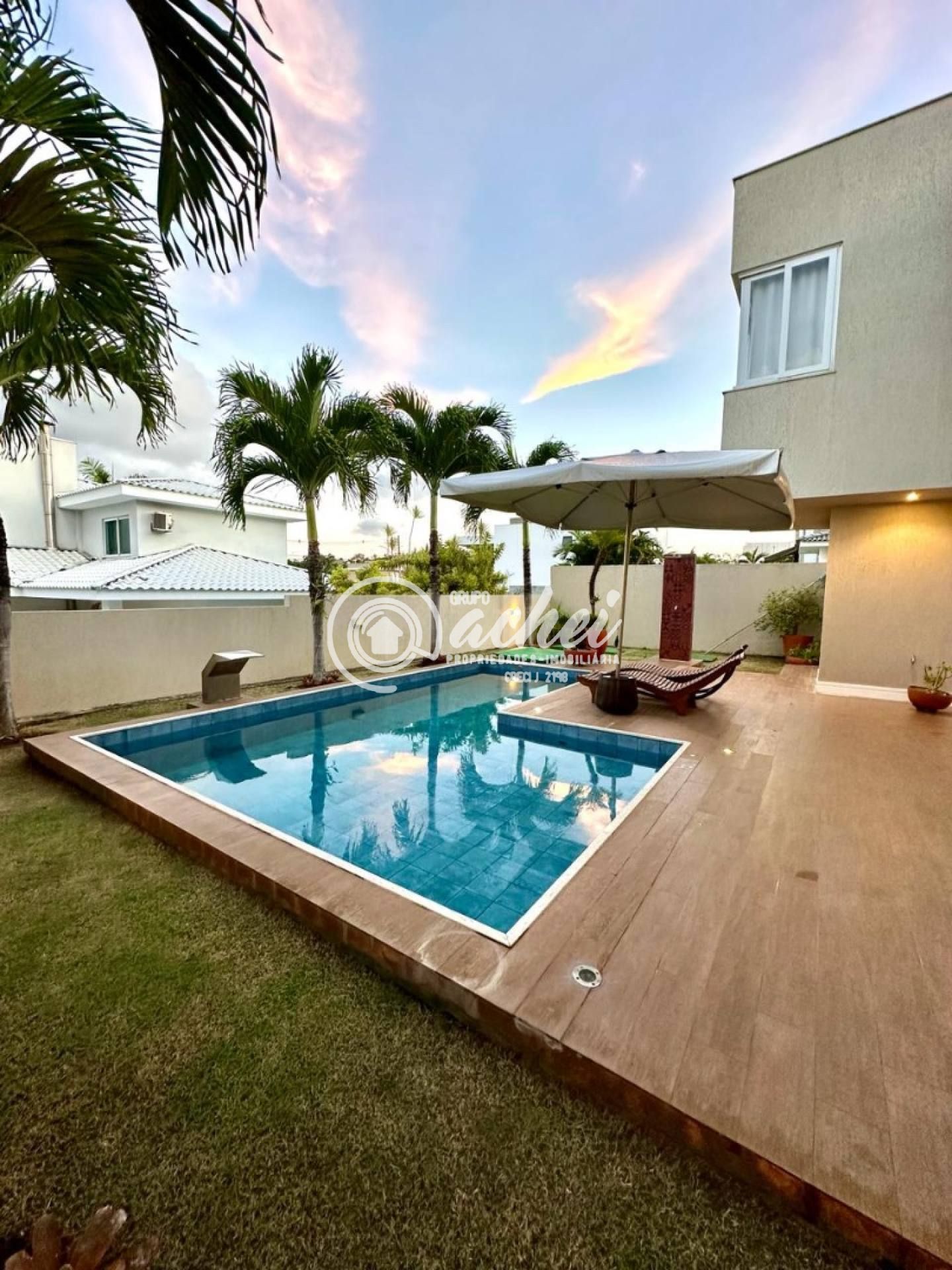 São 464m² de terreno e 306m² de área construída. Conta com piscina, lavabo externo, chuveirão e deck. O imóvel possui energia fotovoltaica, aquecedor solar com boiler, armários embutidos, luminárias, suítes climatizadas, jardim com paisagismo, poço artesiano e irrigação automatizada.
