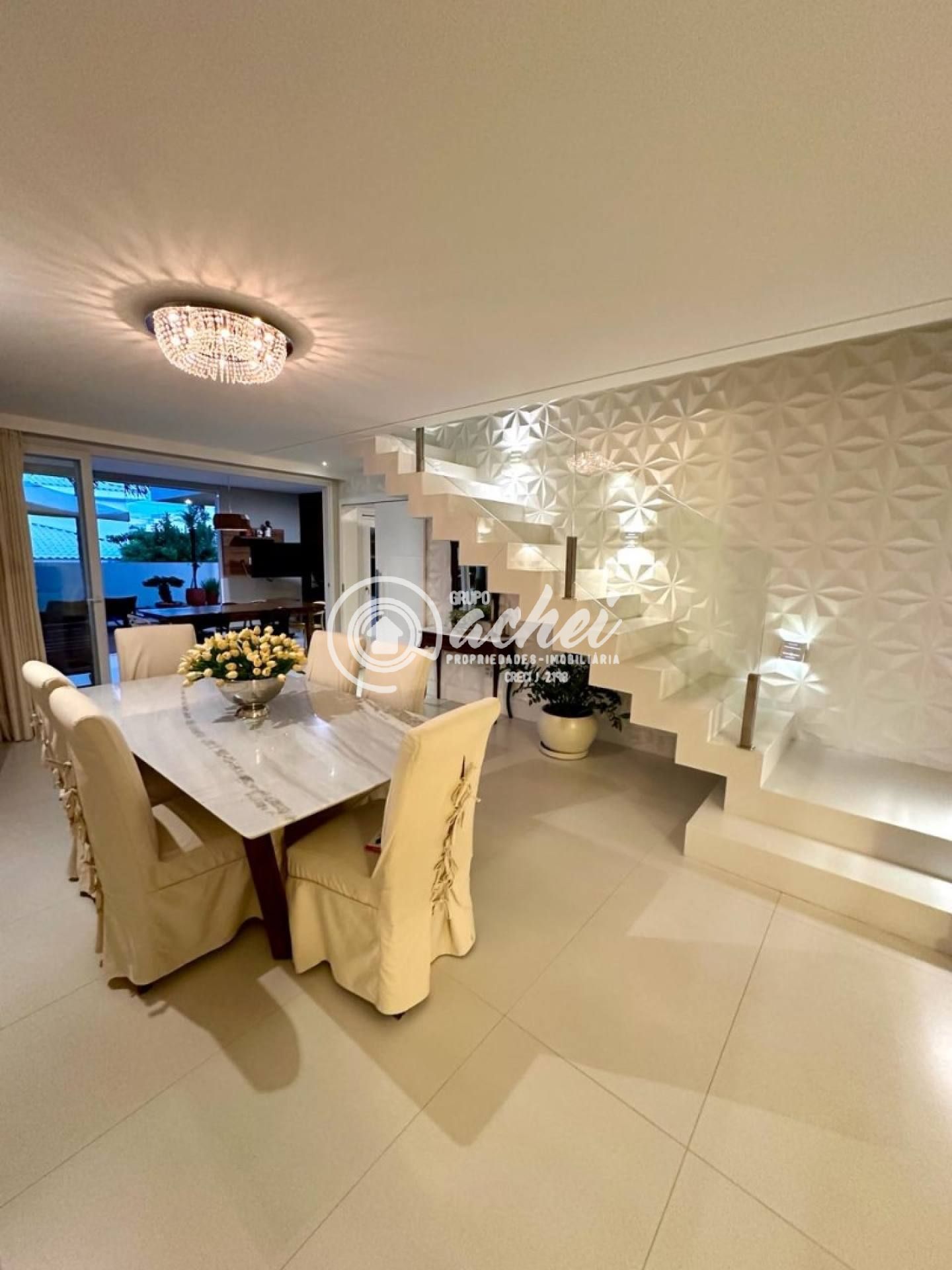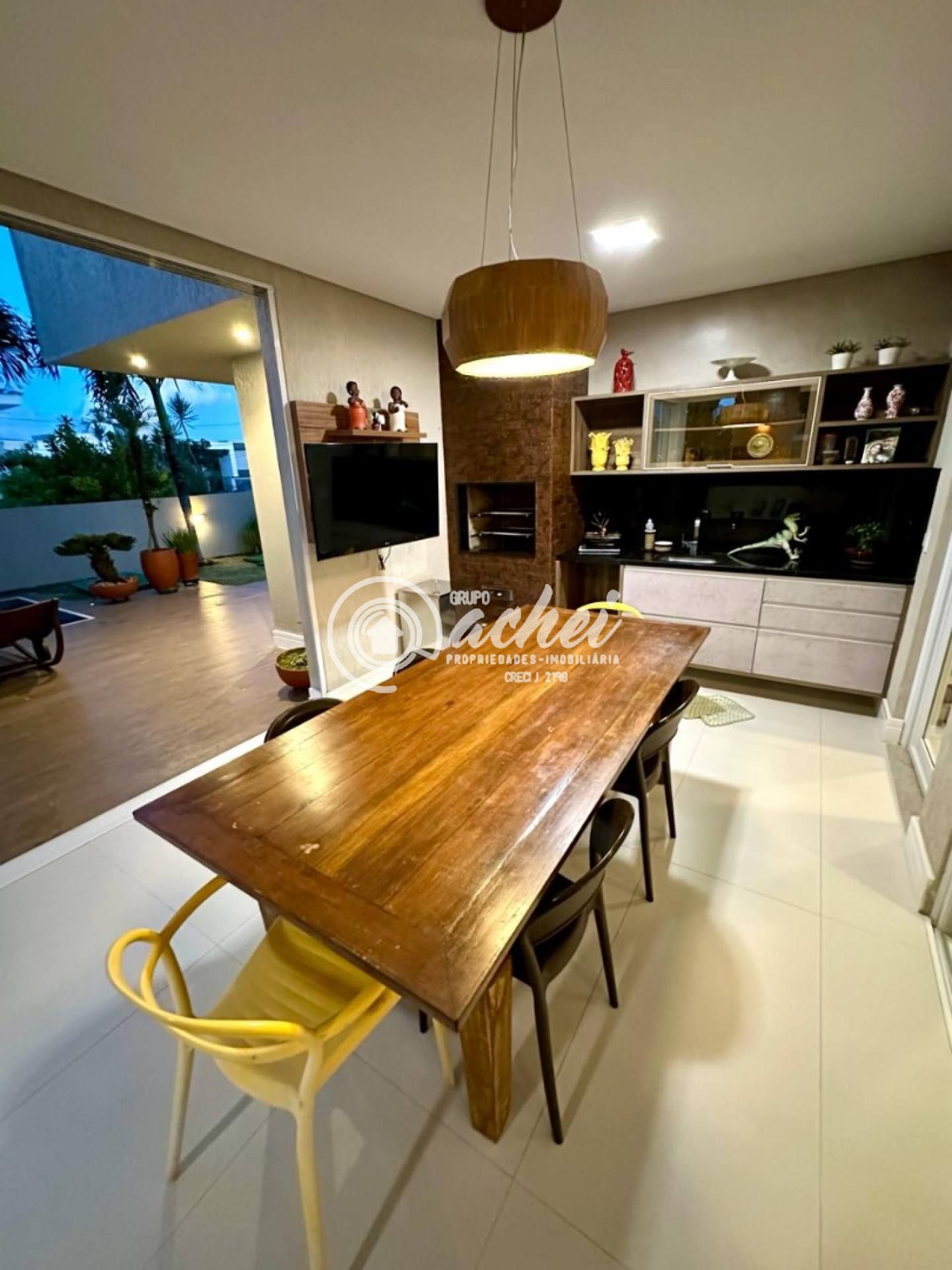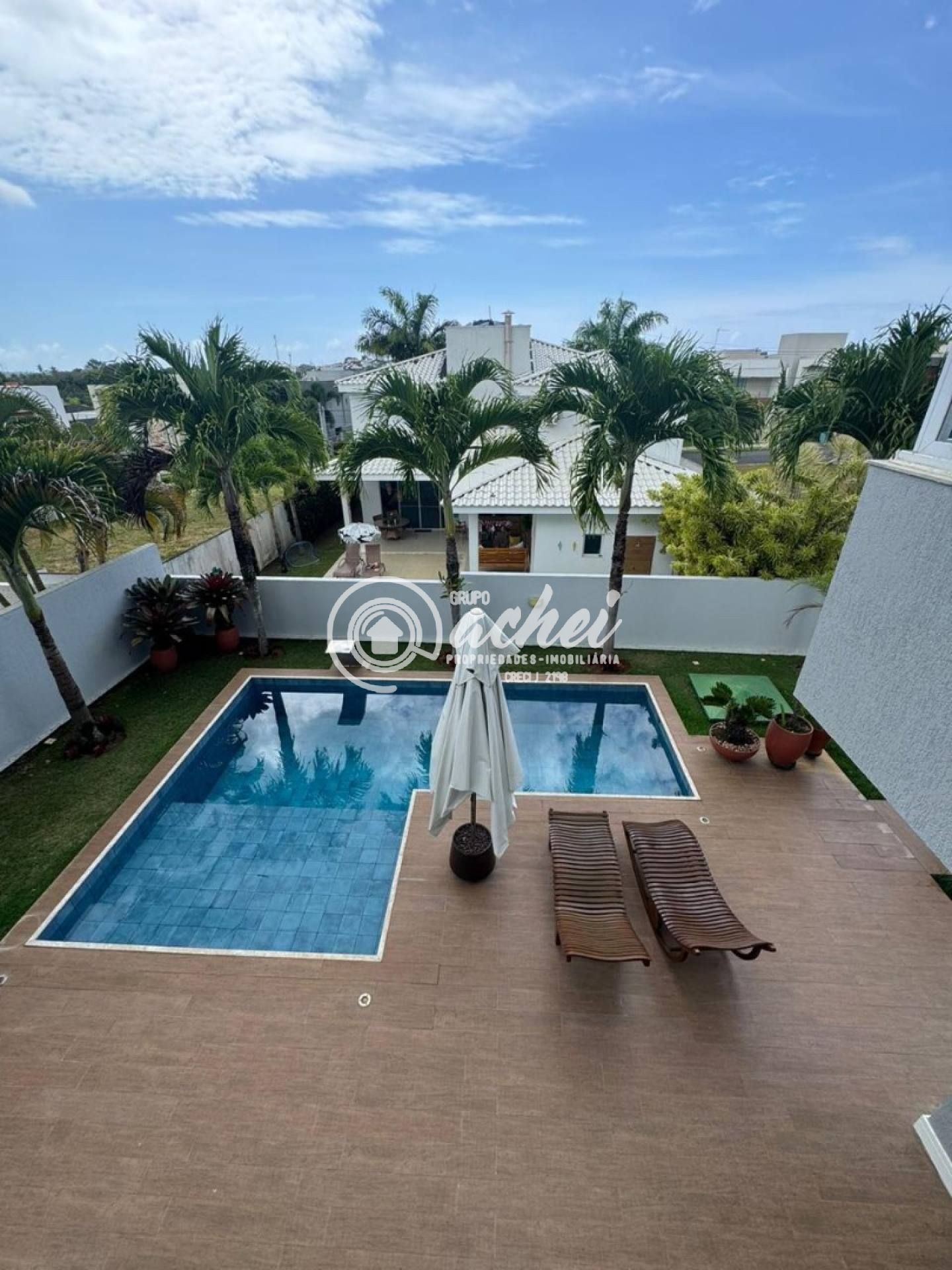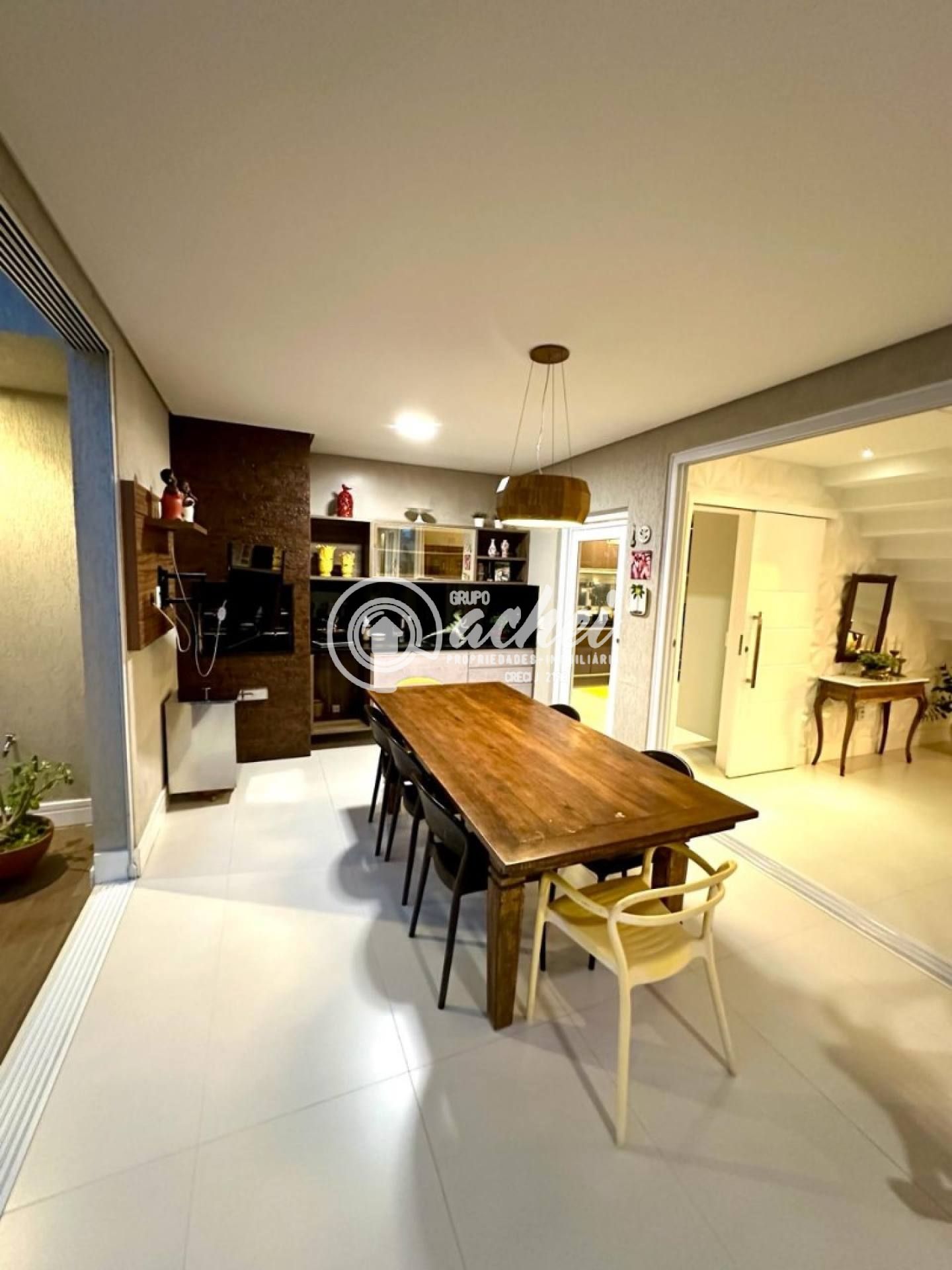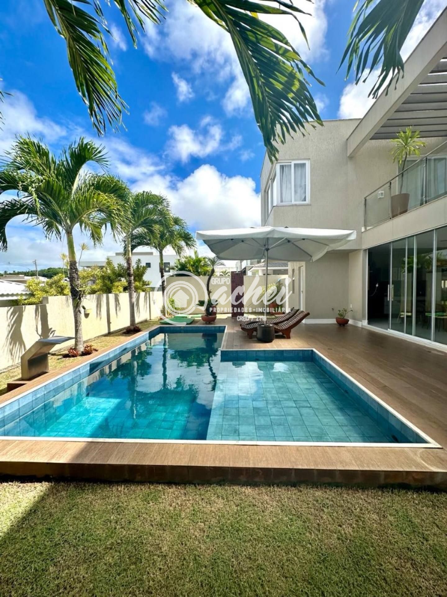 São 464m² de terreno e 306m² de área construída. Conta com piscina, lavabo externo, chuveirão e deck. O imóvel possui energia fotovoltaica, aquecedor solar com boiler, armários embutidos, luminárias, suítes climatizadas, jardim com paisagismo, poço artesiano e irrigação automatizada.