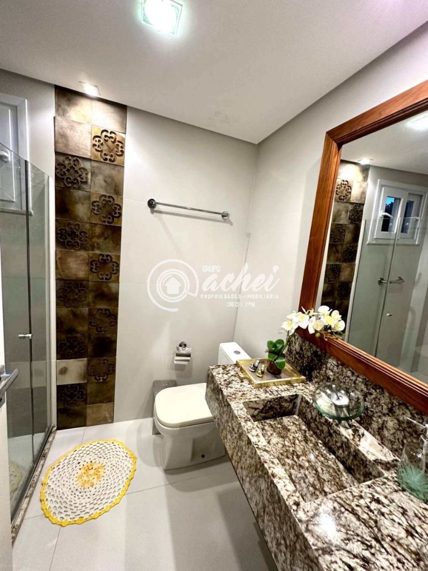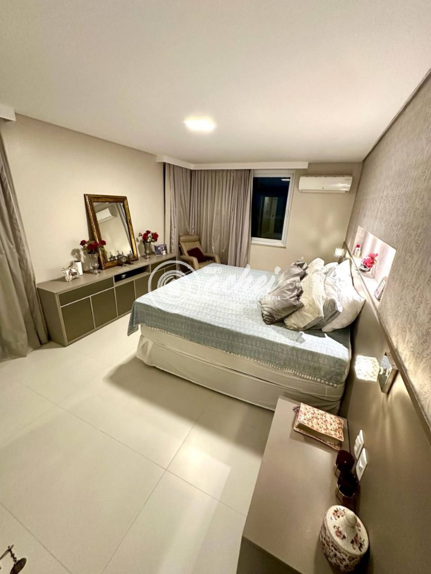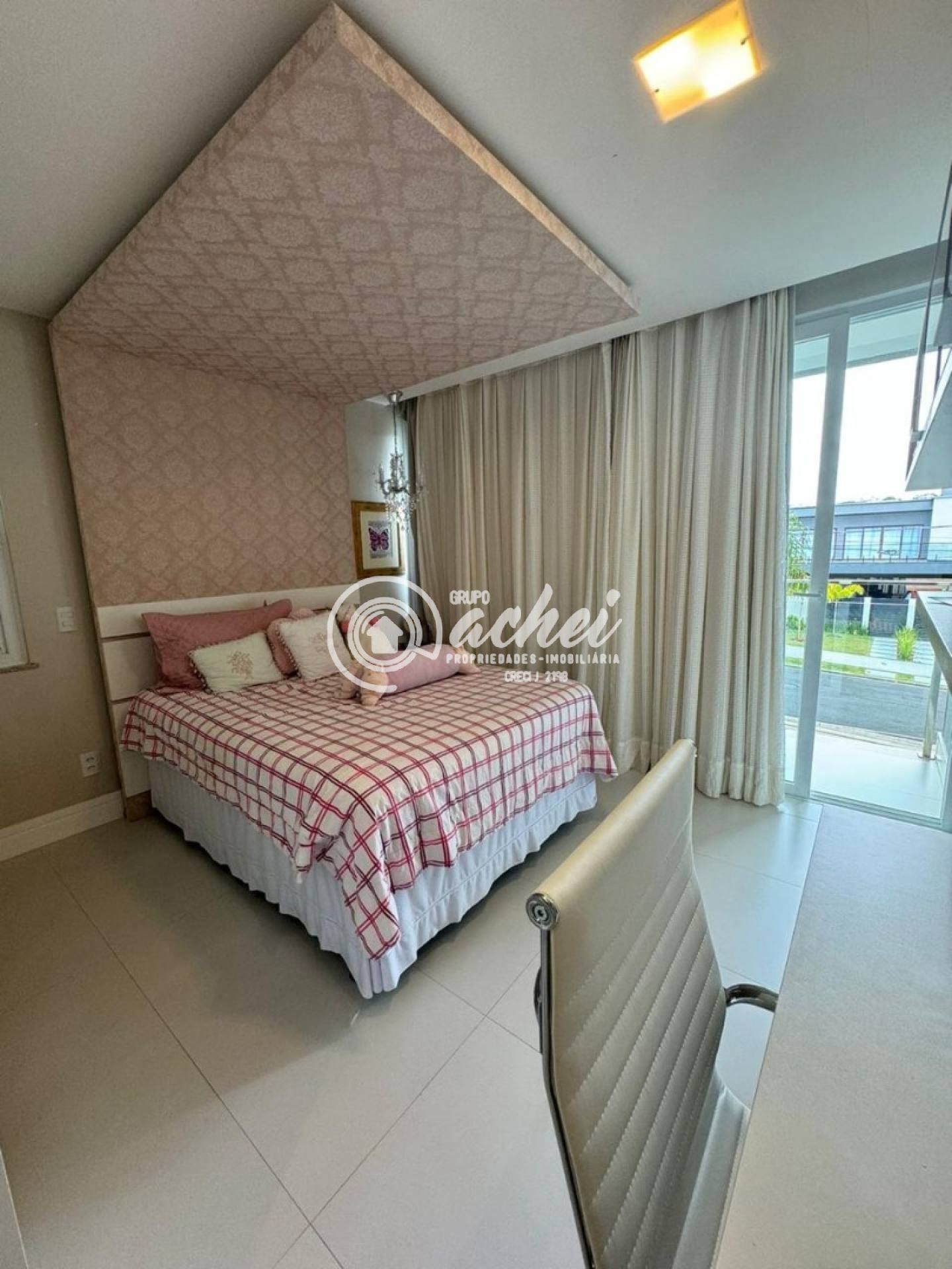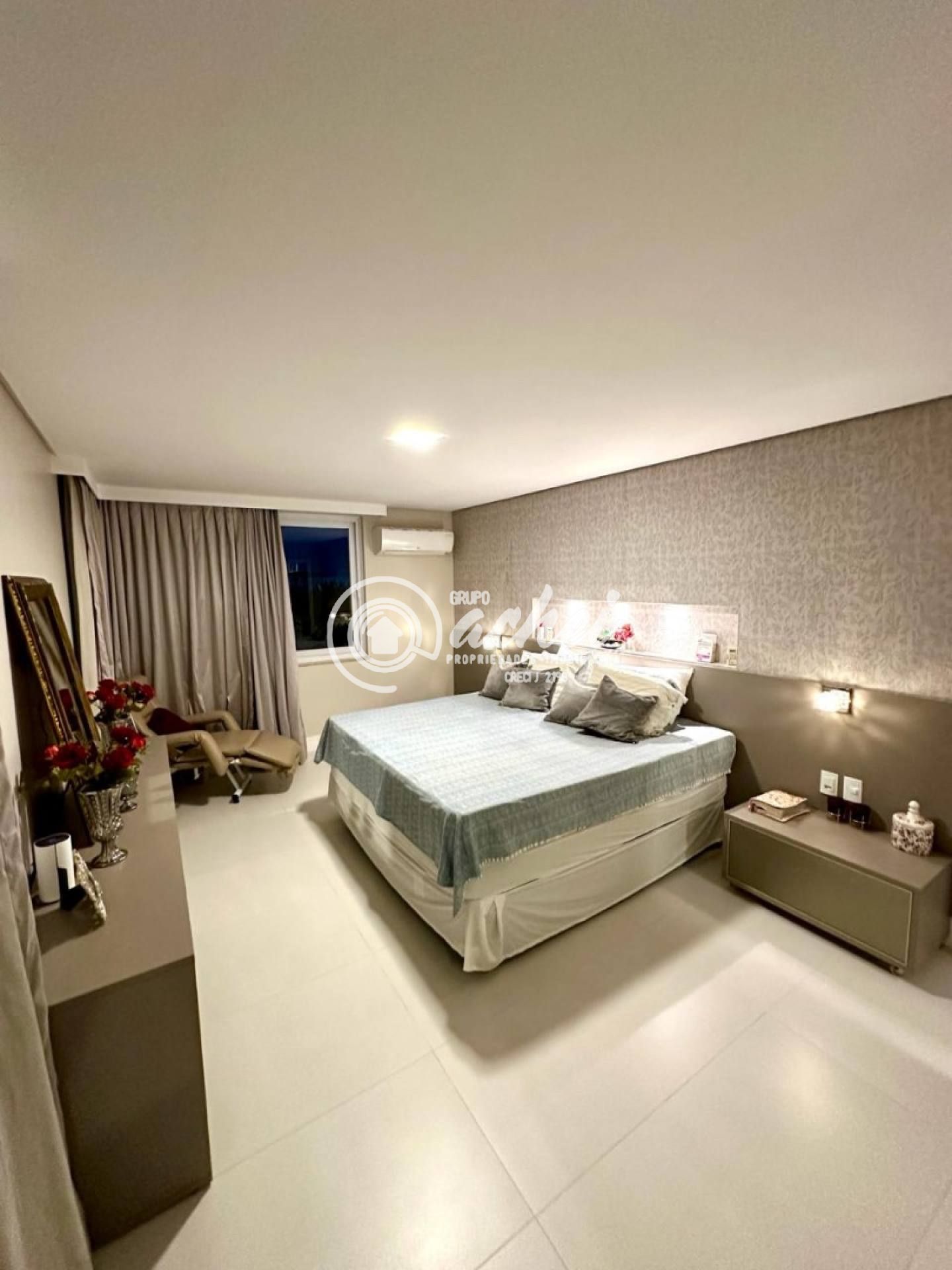 São 464m² de terreno e 306m² de área construída. Conta com piscina, lavabo externo, chuveirão e deck. O imóvel possui energia fotovoltaica, aquecedor solar com boiler, armários embutidos, luminárias, suítes climatizadas, jardim com paisagismo, poço artesiano e irrigação automatizada.