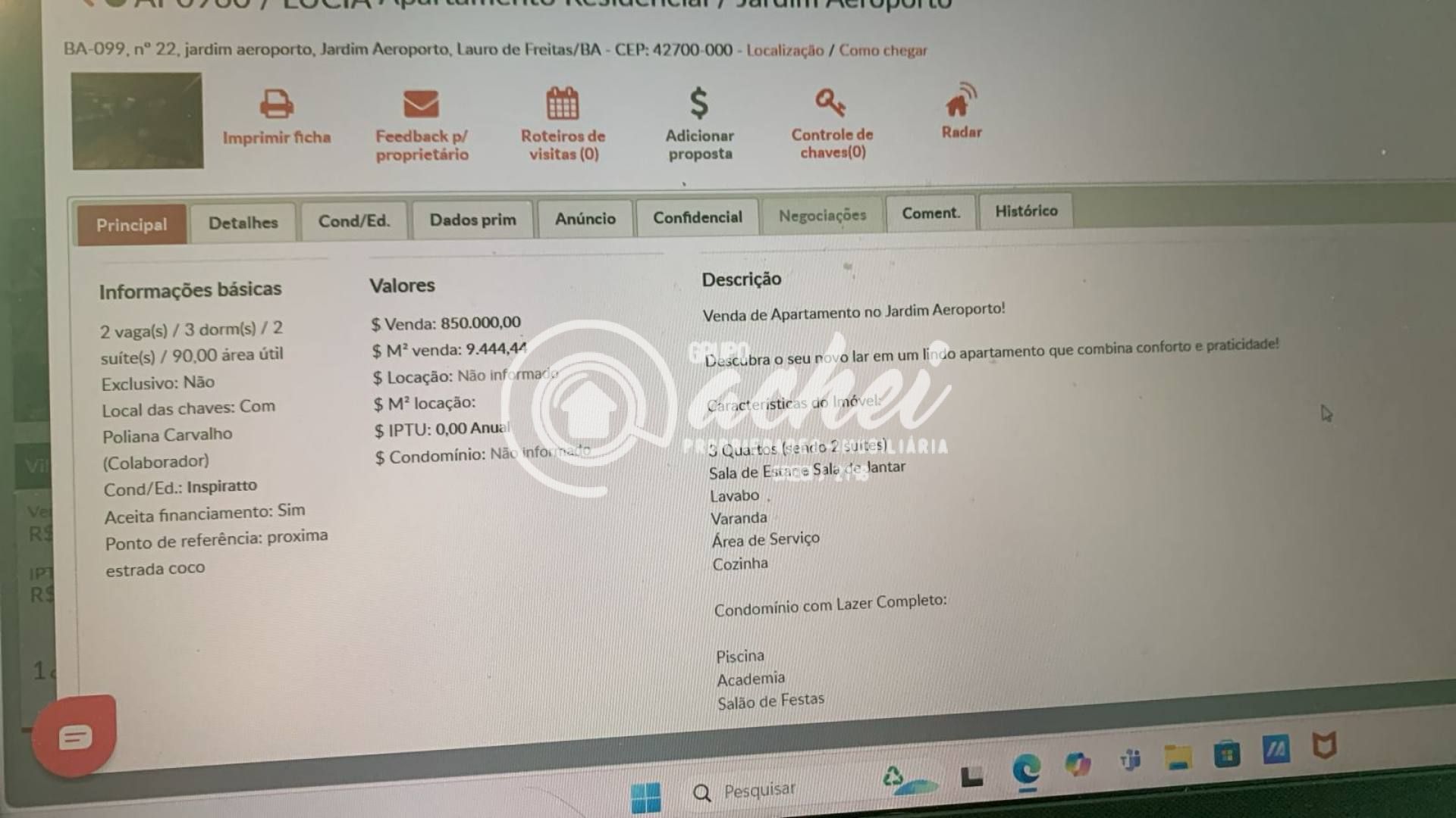 Valor Condomínio: R$ 600,00
