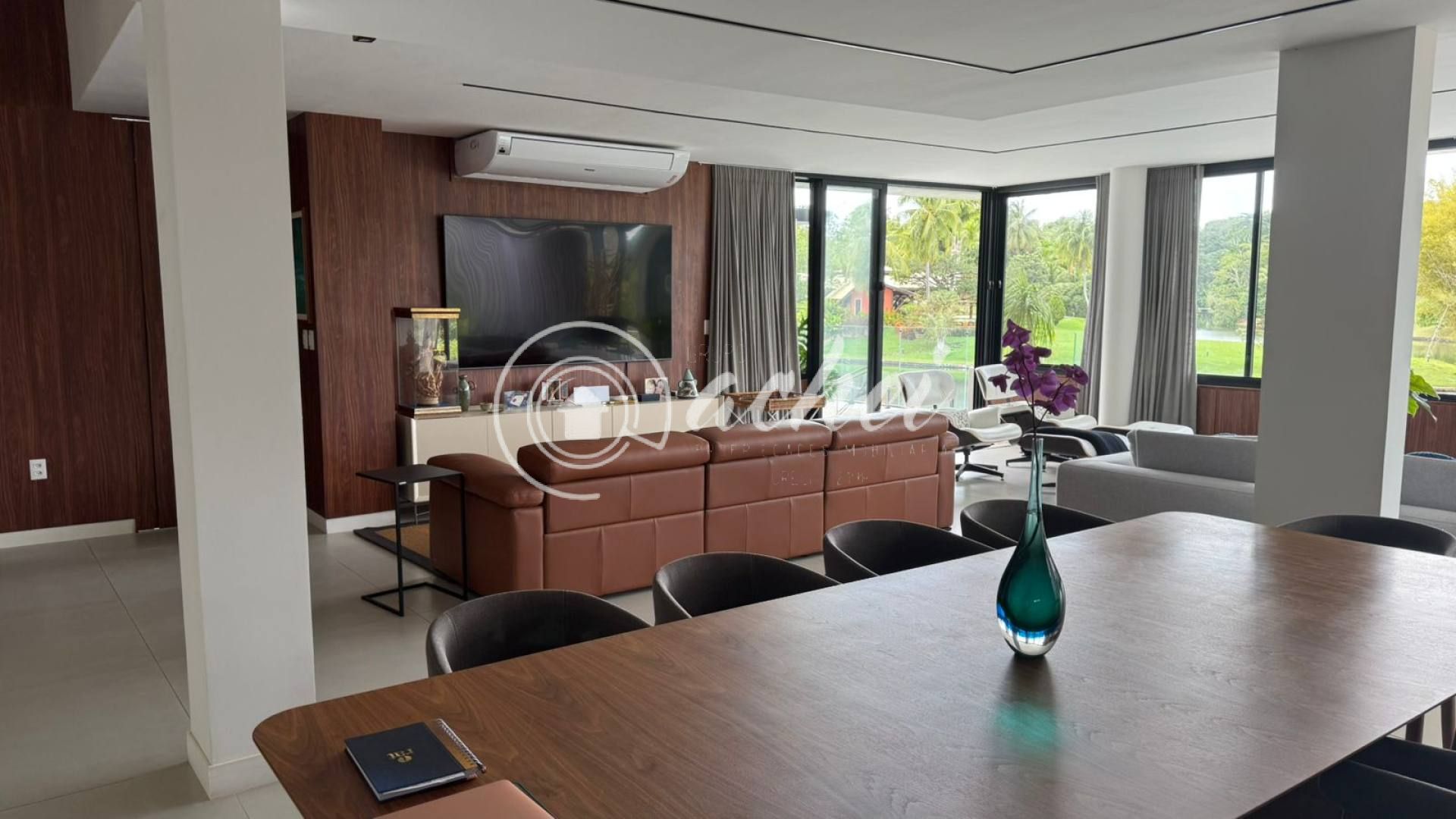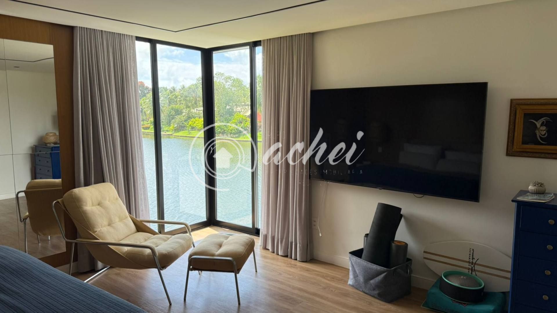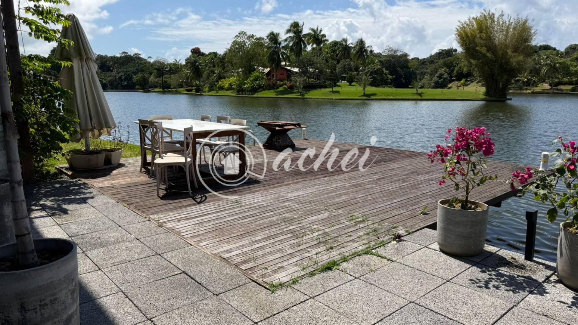 Casa ampla e exclusiva, com 3.900 m² de terreno arborizado e 500 m² de área construída, em frente à lagoa, oferecendo a melhor vista do condomínio.