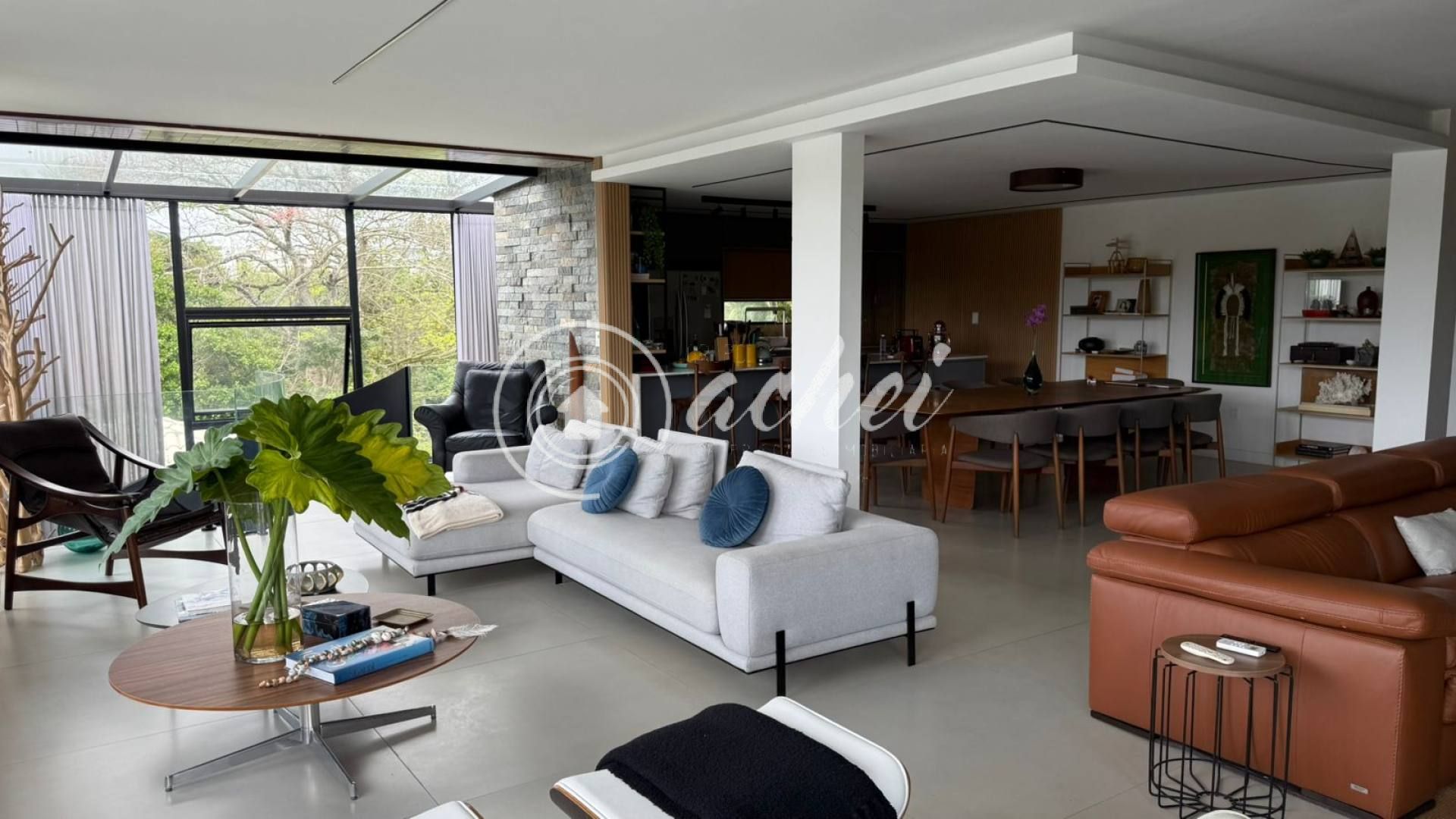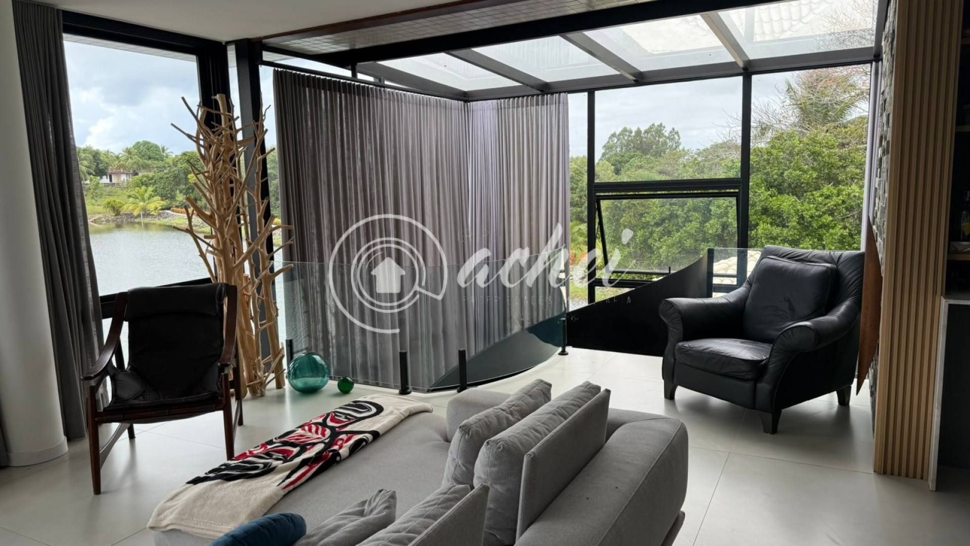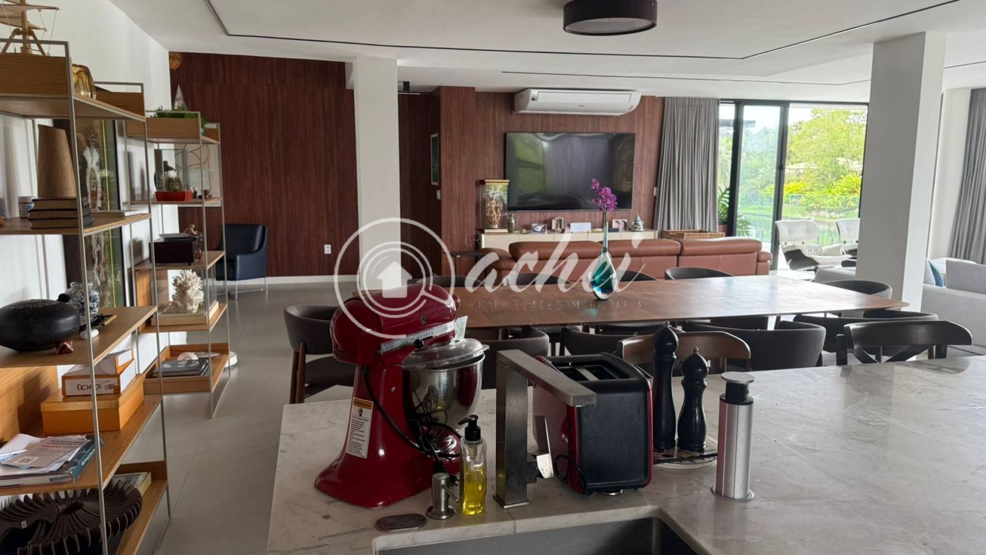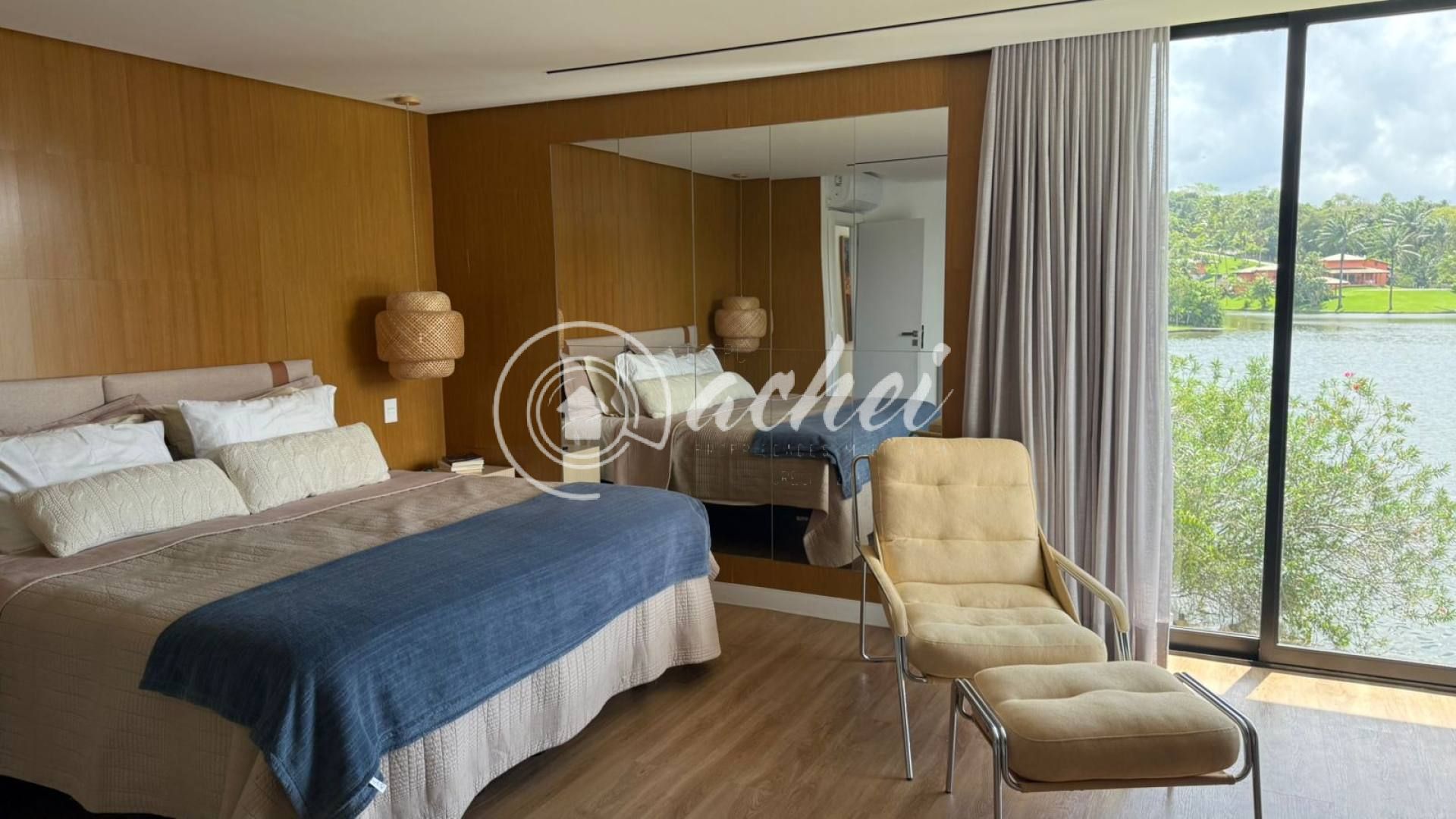 Casa ampla e exclusiva, com 3.900 m² de terreno arborizado e 500 m² de área construída, em frente à lagoa, oferecendo a melhor vista do condomínio.