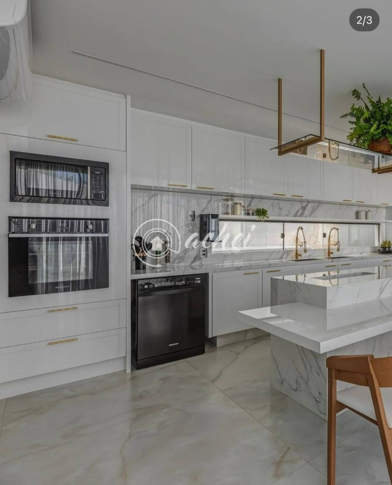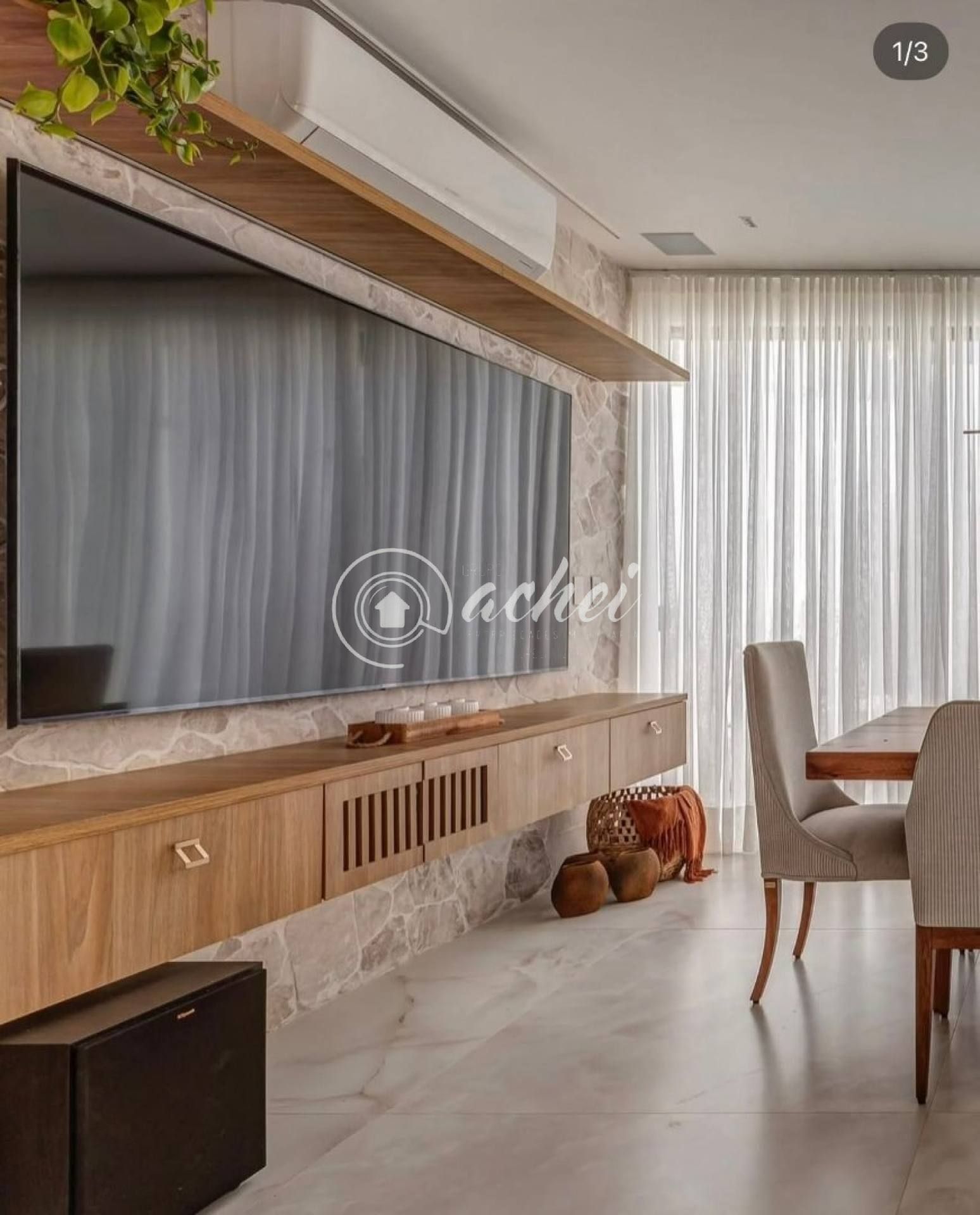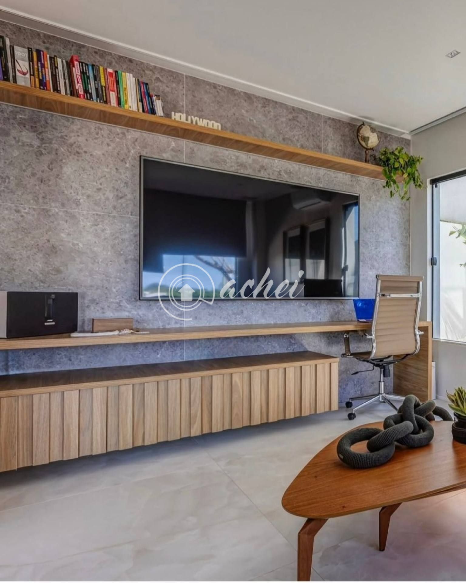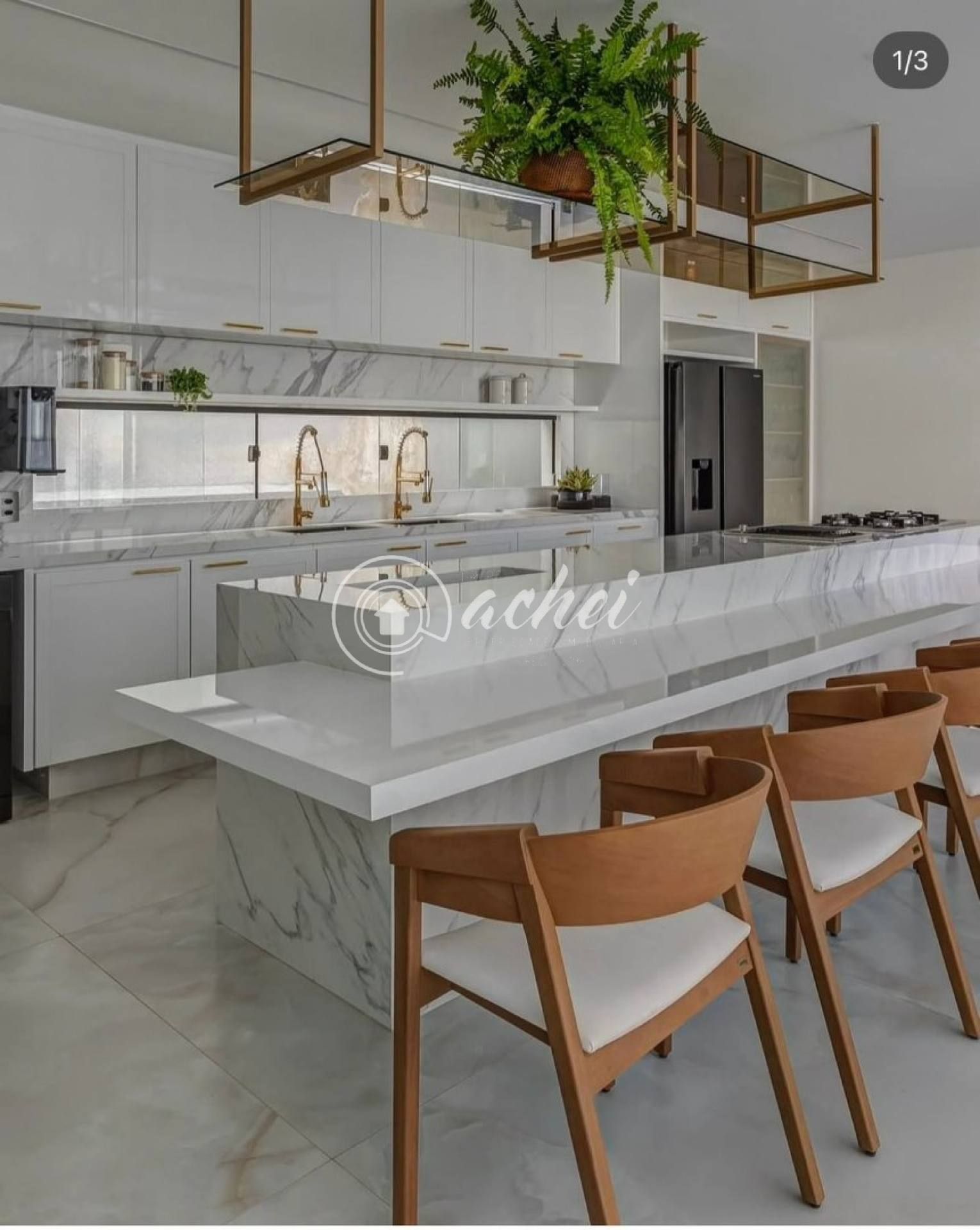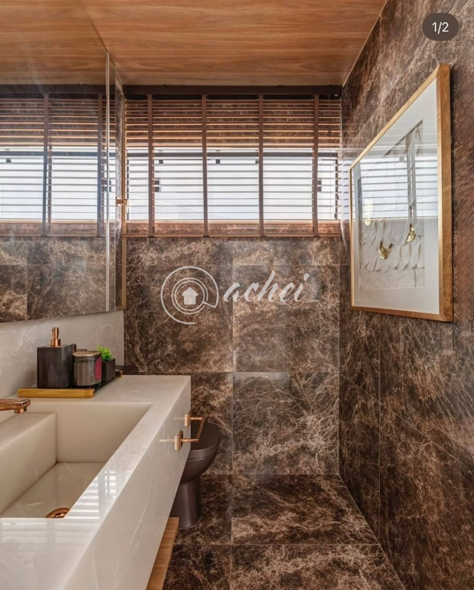 As salas de estar e jantar, amplas e elegantes, são mobiliadas com peças Sierra, criando um ambiente acolhedor e sofisticado. A residência dispõe ainda de uma adega equipada com capacidade para mais de 200 garrafas, além de uma cozinha gourmet com ilha planejada por BF Móveis e Sierra, equipada com cooktop e grelha Elettromec. Para maior funcionalidade, o imóvel conta também com sala de TV/Home Office e lavabo social.