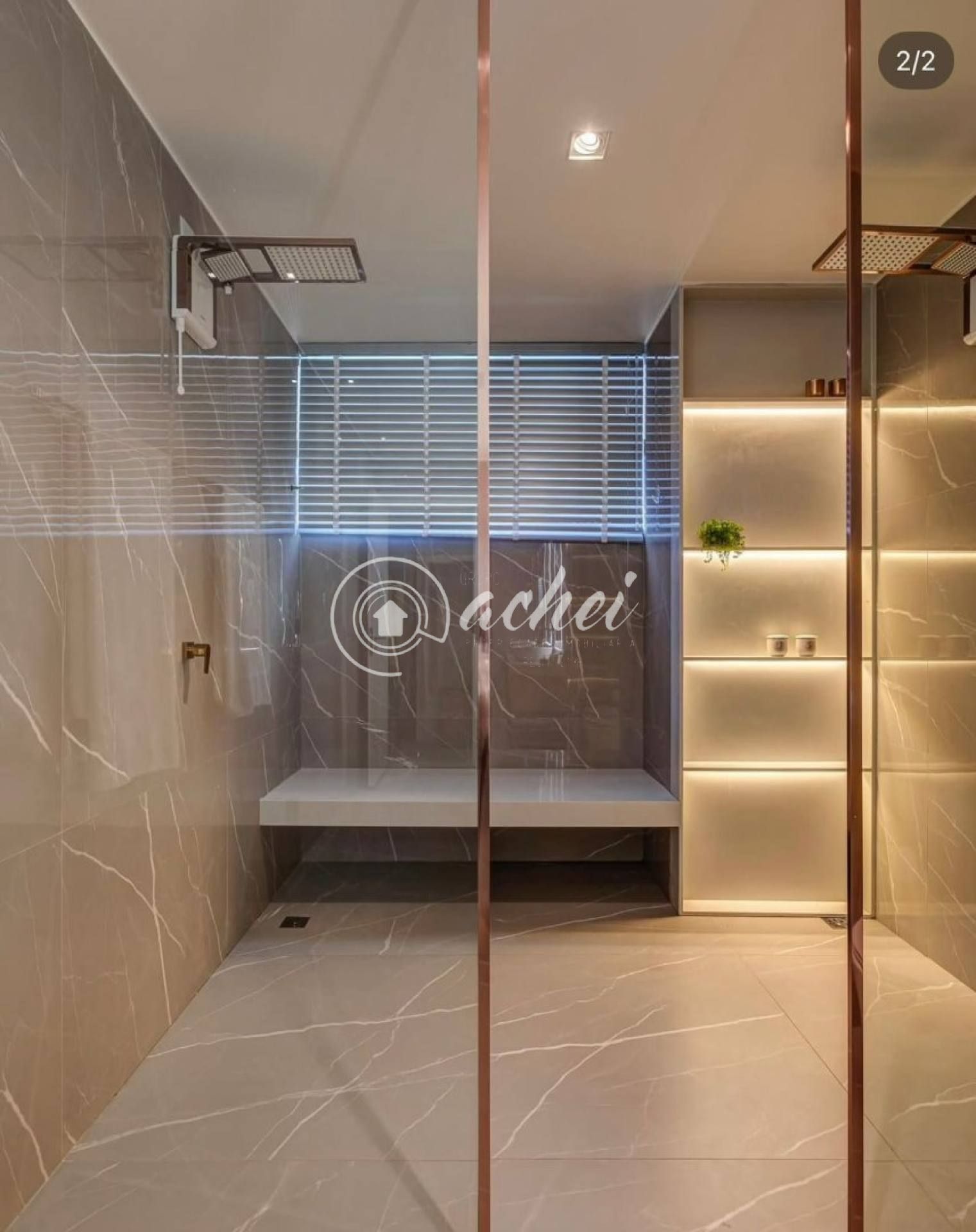 O imóvel conta com 4 suítes, sendo a master um verdadeiro refúgio, com closet com ilha, sala de banho de luxo e chaise Casa Tua Design Brasileiro. Todas as suítes são projetadas para oferecer conforto máximo, complementadas pela climatização completa em toda a casa.
