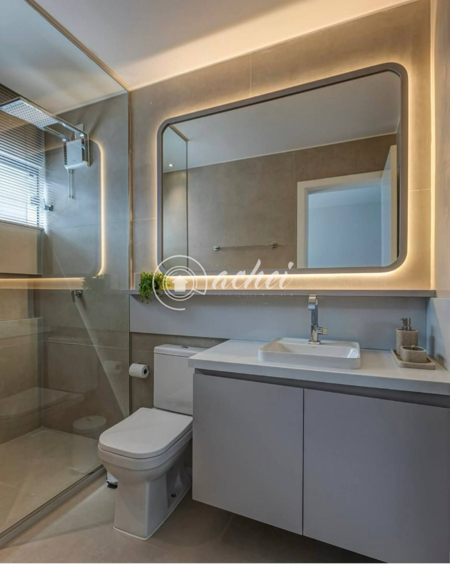 Na área externa, o destaque fica por conta da piscina com cascata e lounge integrado, perfeita para receber amigos e família, além de um lavabo exclusivo para a área de lazer.