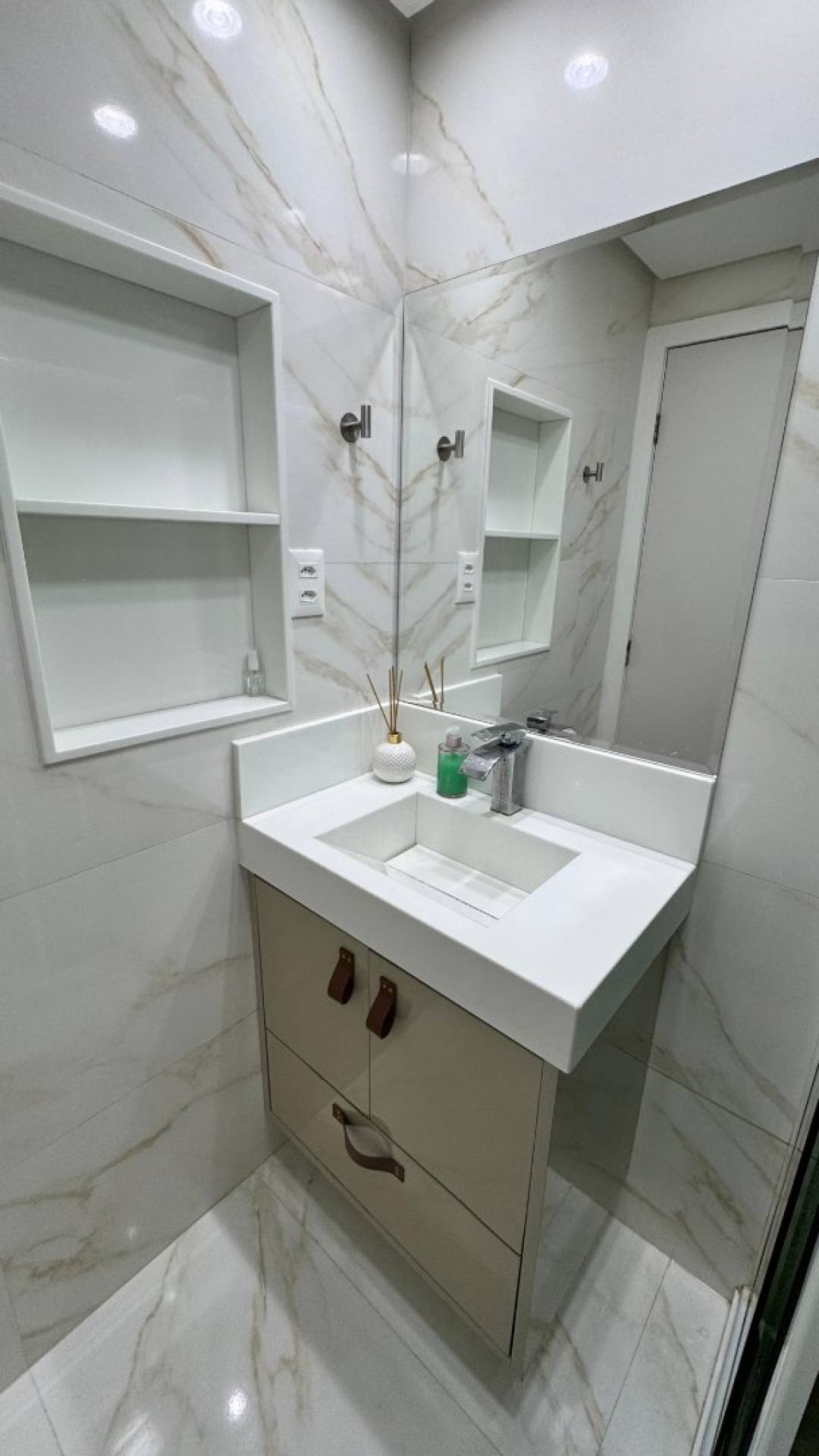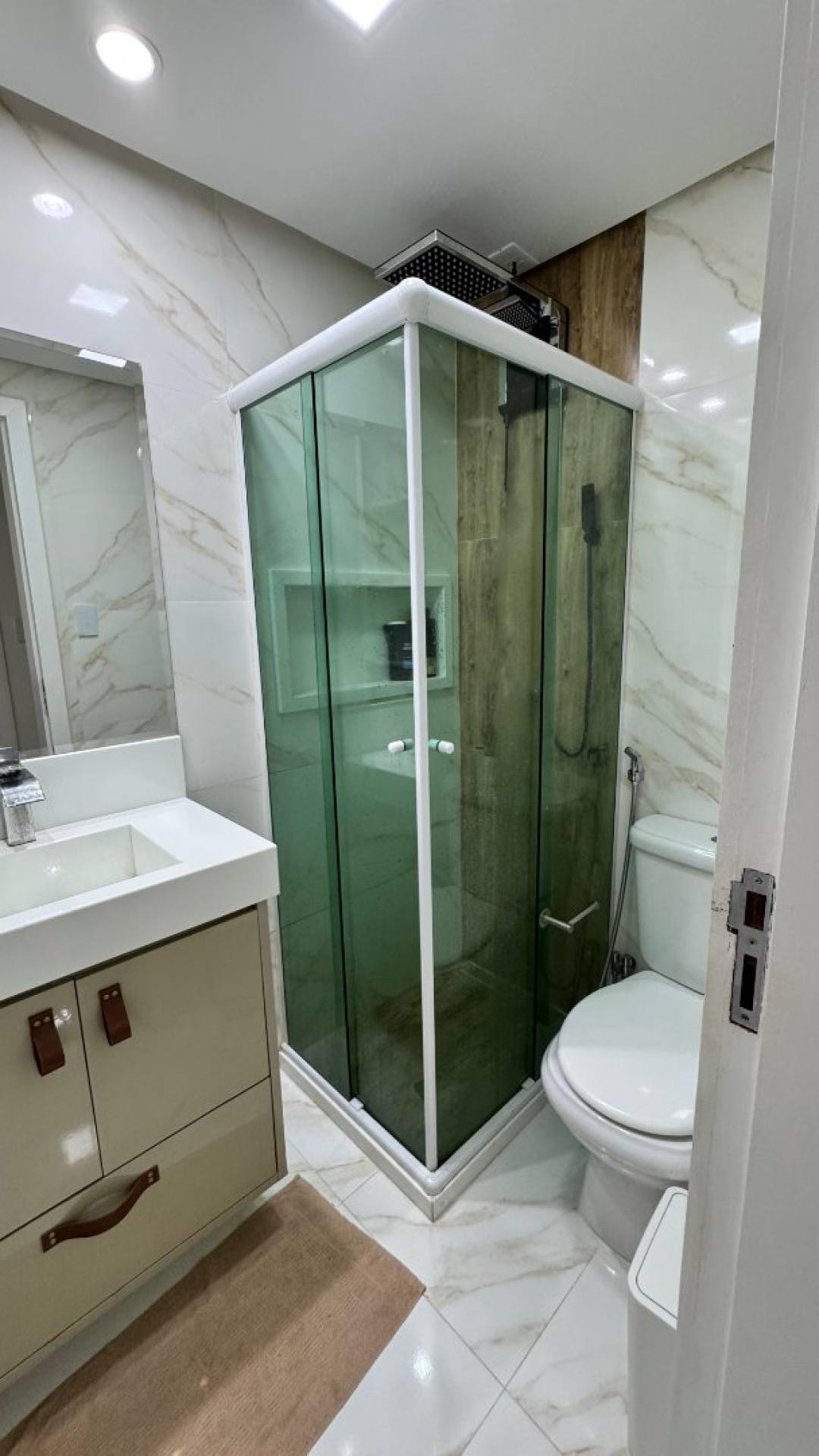 No térreo, a sala, a cozinha e uma das varandas são integradas em um ambiente único, com uma ilha funcional e decorativa que valoriza ainda mais o espaço e mais um banheiro social e lavanderia. Com marcenaria sob medida e revestimentos de alto padrão, cada detalhe foi planejado para oferecer exclusividade e qualidade de vida.
