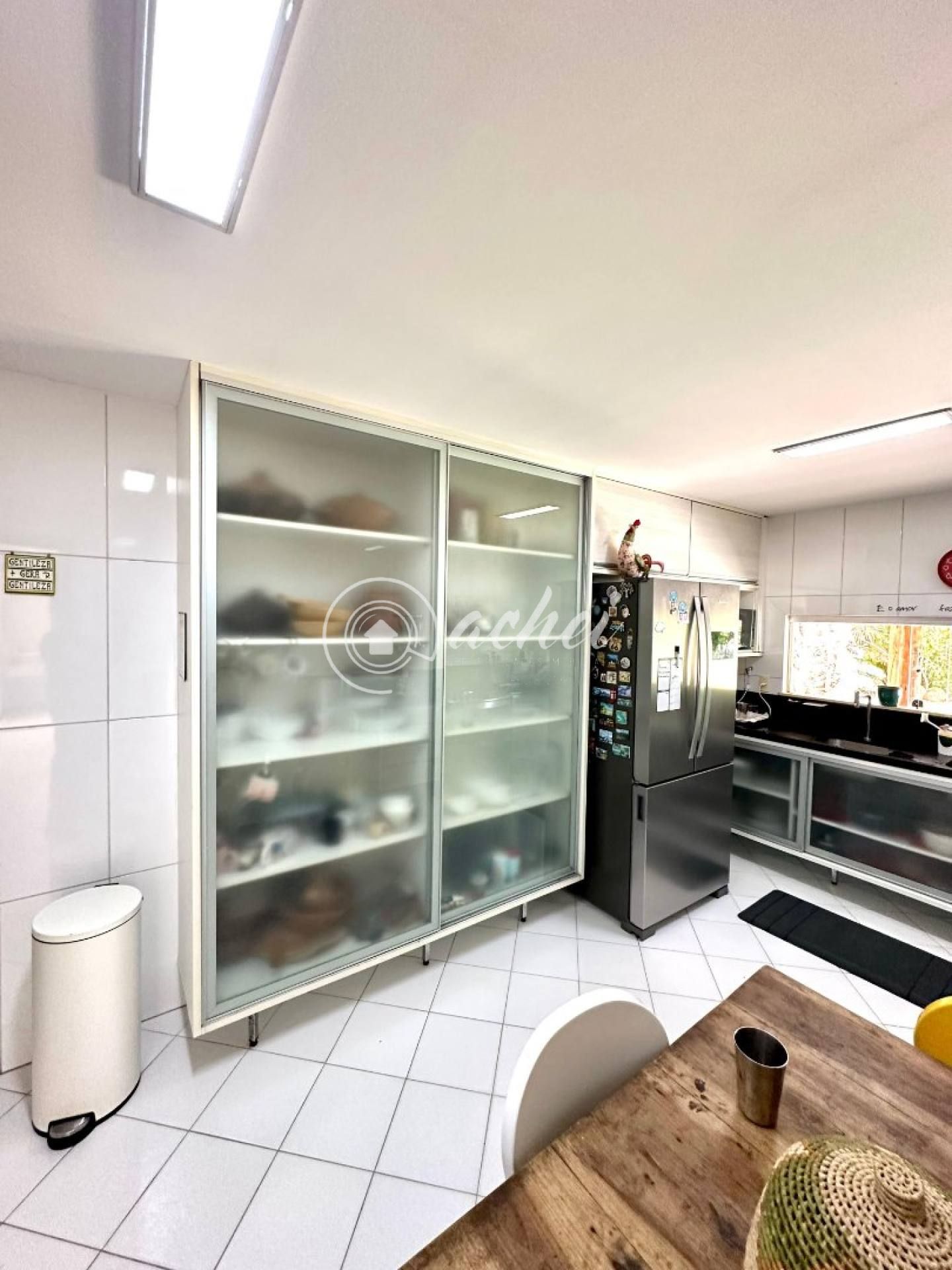 No pavimento térreo, um jardim com paisagismo impecável dá boas-vindas ao imóvel. O espaço conta com garagem para até 5 carros, sala ampla em dois ambientes integrada à varanda, lavabo, cozinha planejada com despensa, área de serviço, dependência completa e uma suíte canadense. A área externa é um convite ao lazer, com piscina privativa, irrigação automatizada e sistema de aquecimento solar já instalado.