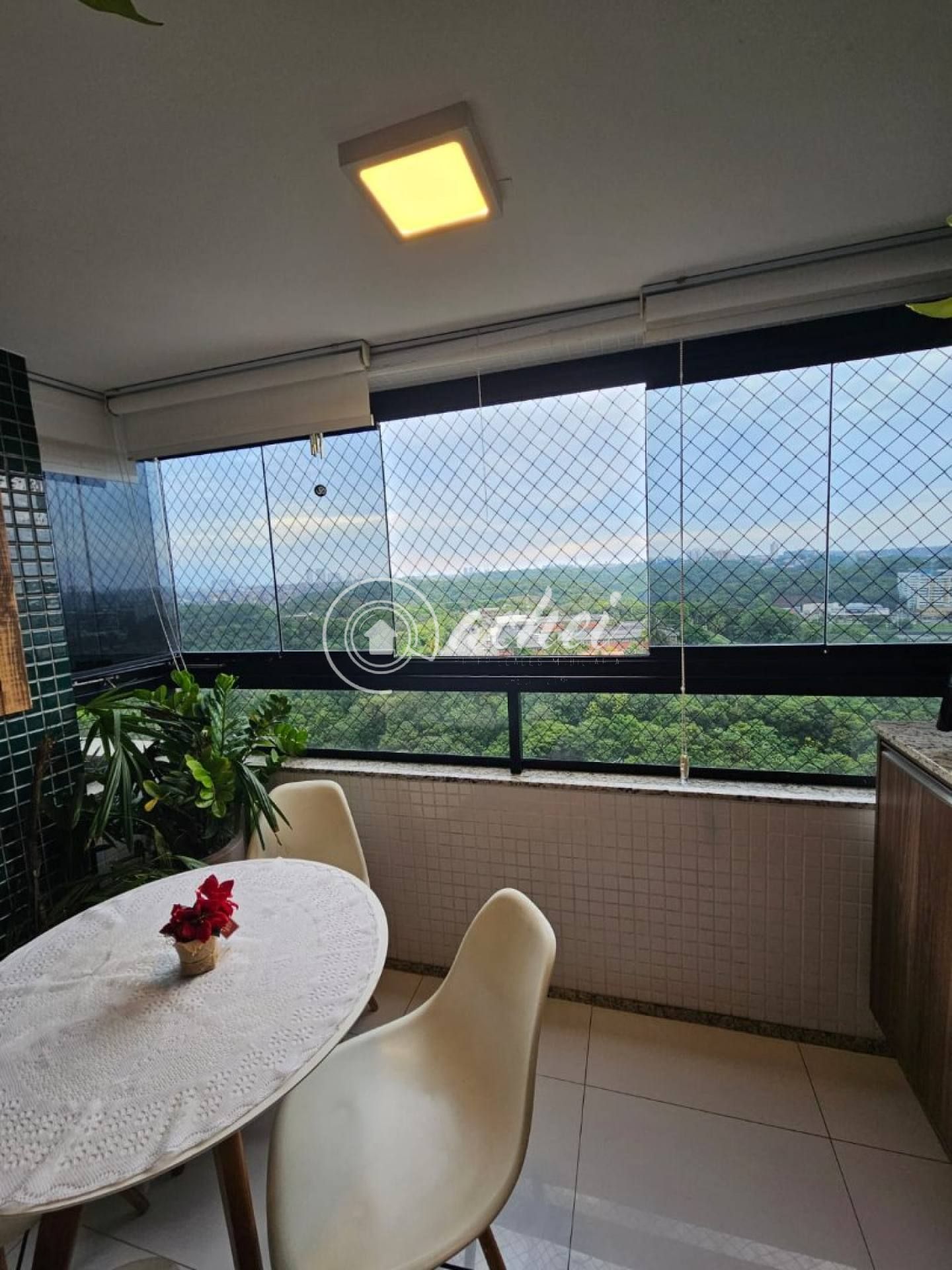 Varanda arejada com Reike e integrada com a sala.