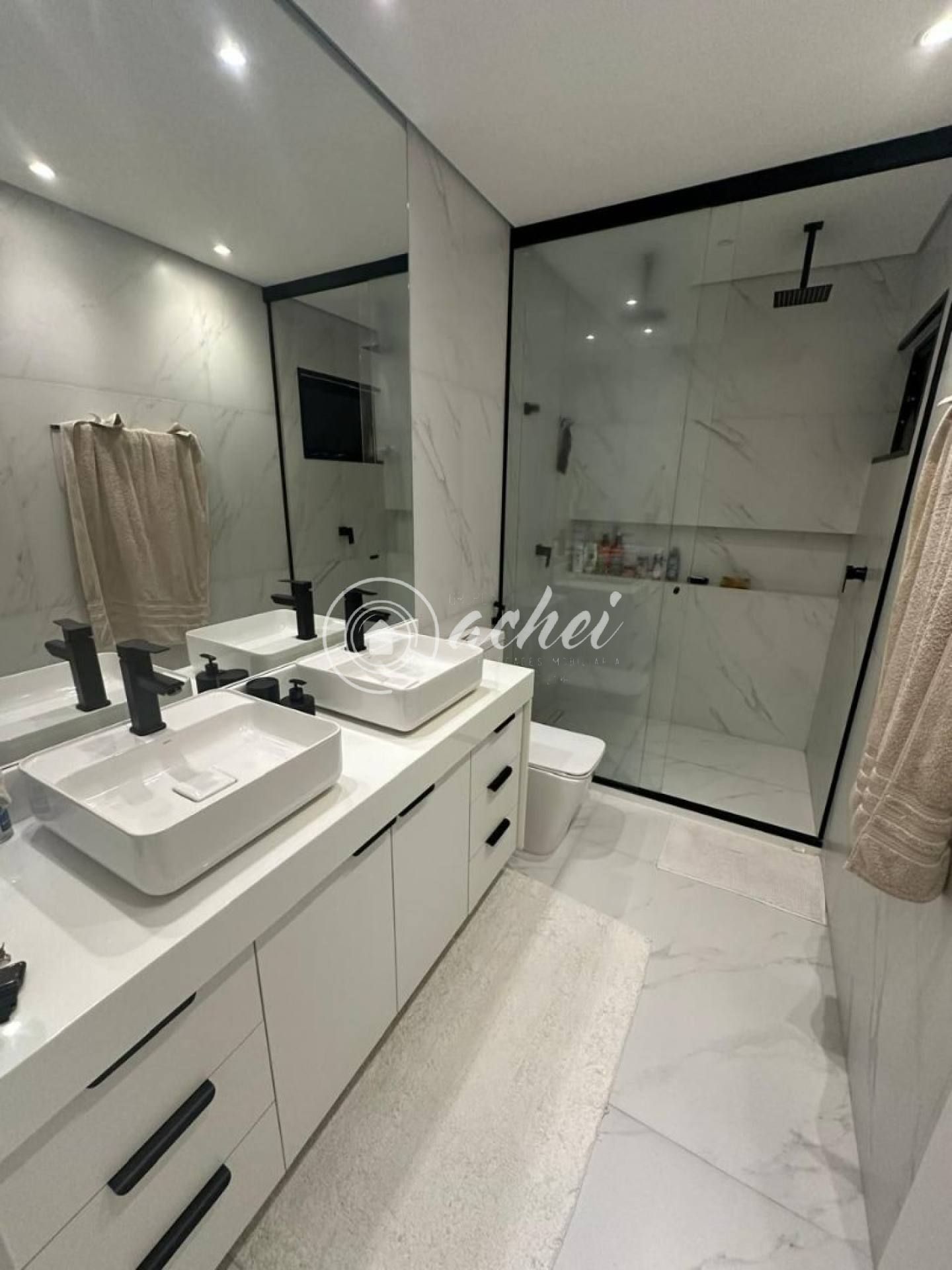 A casa possui 4 quartos, todos suítes, com destaque para a suíte master, que conta com closet e banheiro espaçoso com duas cubas e dois chuveiros, proporcionando ainda mais praticidade e conforto no dia a dia.