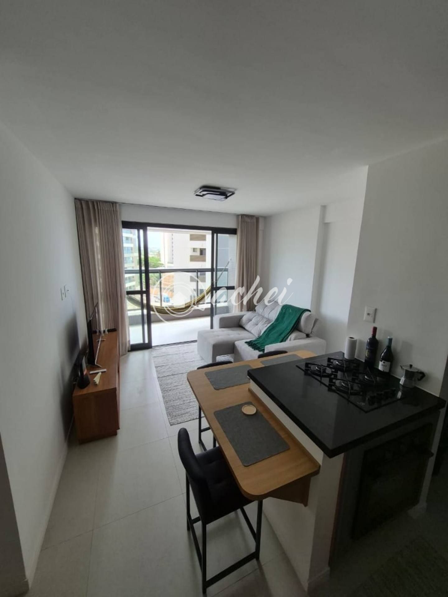 A unidade possui 2 quartos, sendo 1 suíte, ambientes bem ventilados e posição nascente, garantindo excelente iluminação natural e a agradável brisa marítima ao longo do dia. O apartamento conta com armários planejados na cozinha e nos banheiros, além de cooktop e forno embutido, oferecendo praticidade e elegância no dia a dia.