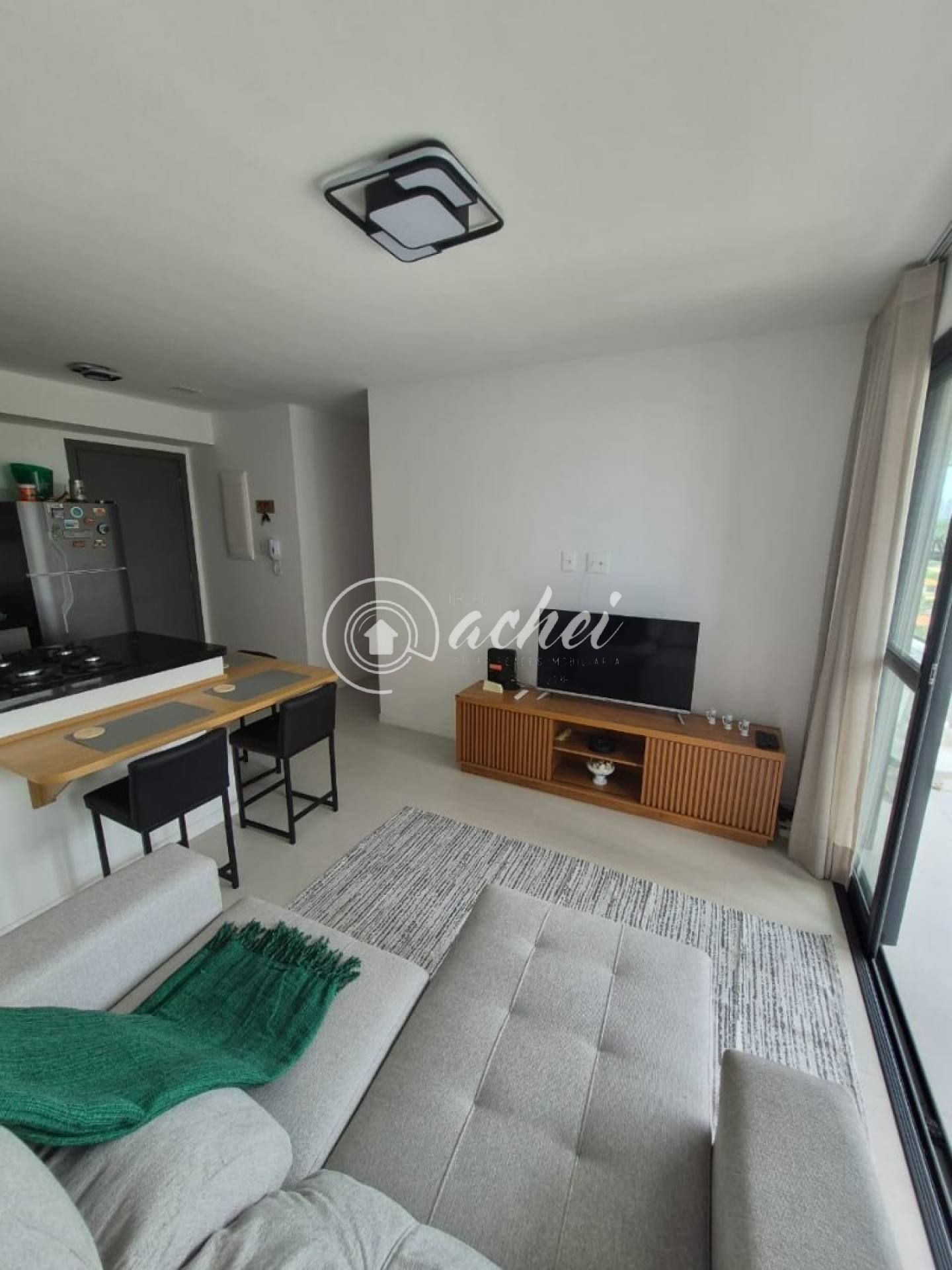 Outro grande diferencial é a flexibilidade da mobília, que pode ser negociada conforme a necessidade do locatário. Atualmente o imóvel dispõe de itens como sofá, rack, geladeira e micro-ondas.