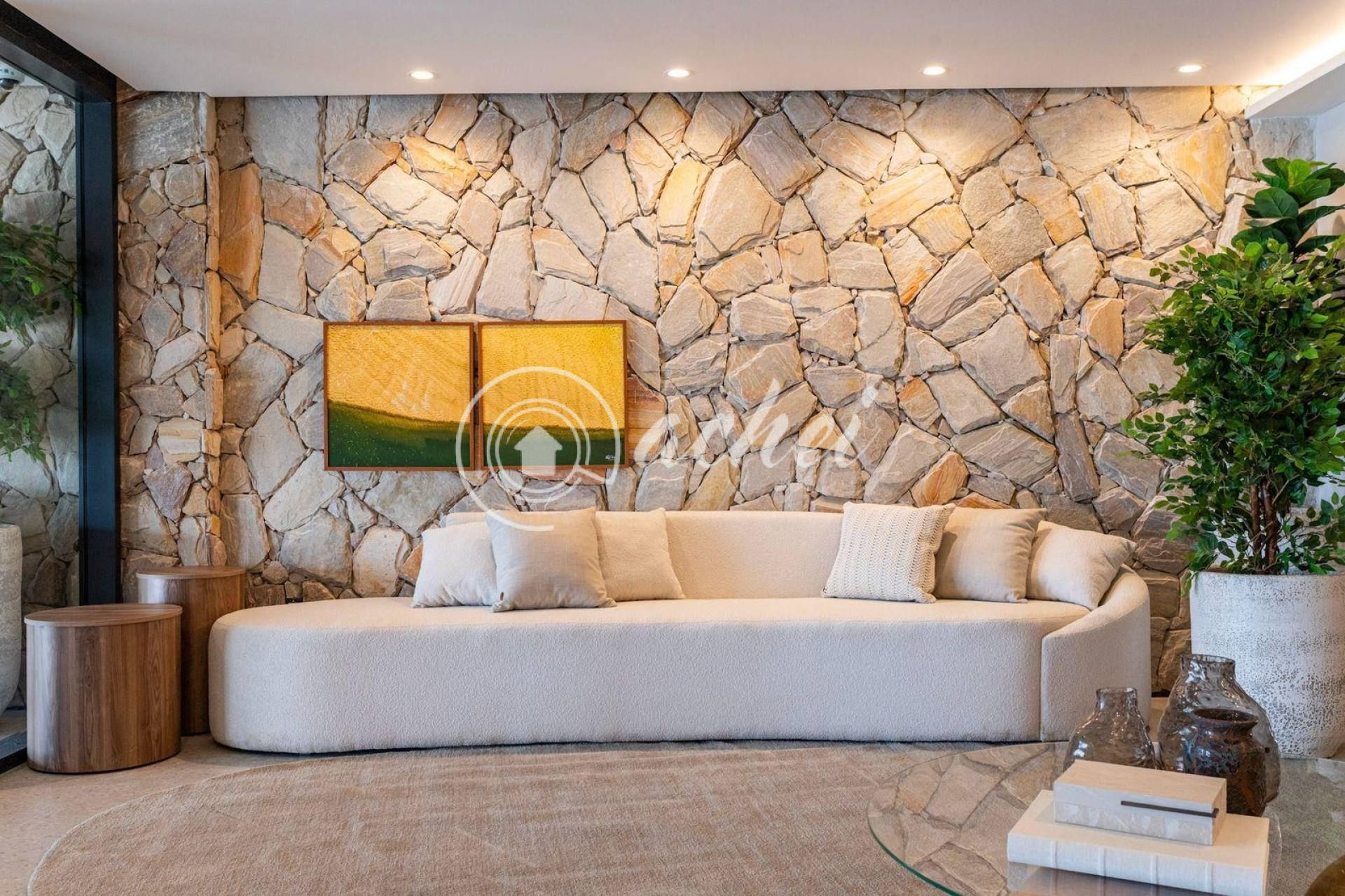A suíte master é climatizada com ar-condicionado e possui armários planejados, proporcionando mais conforto e organização. Os banheiros contam com armários e espelhos amplos, trazendo sensação de amplitude e sofisticação aos ambientes.